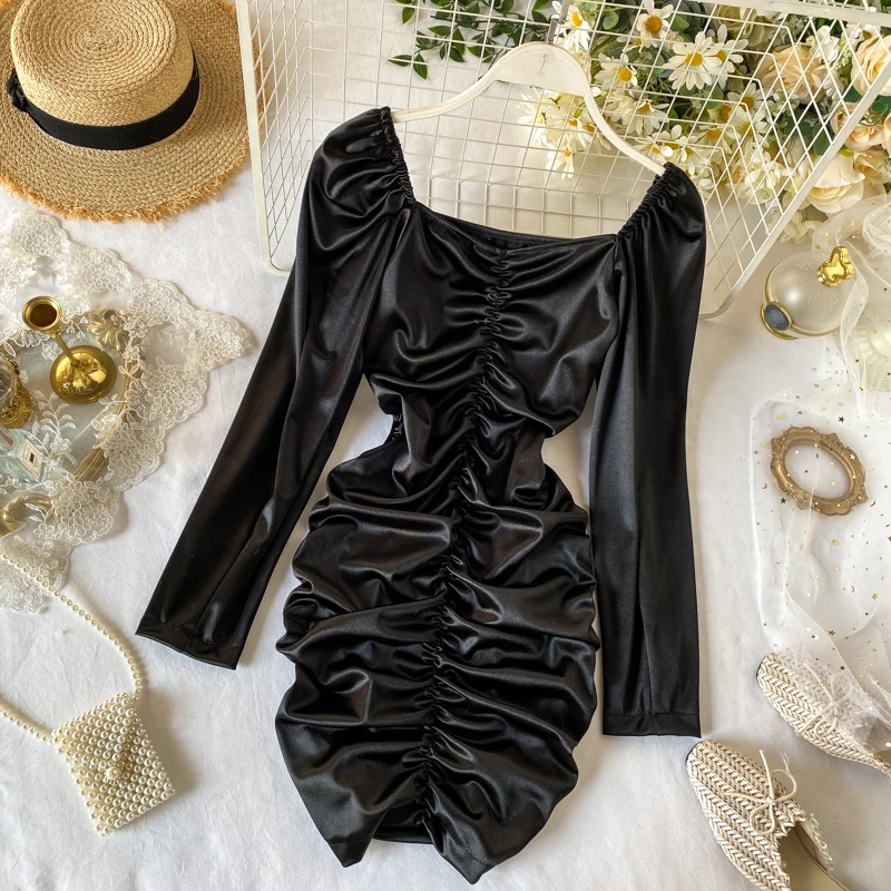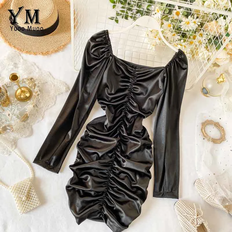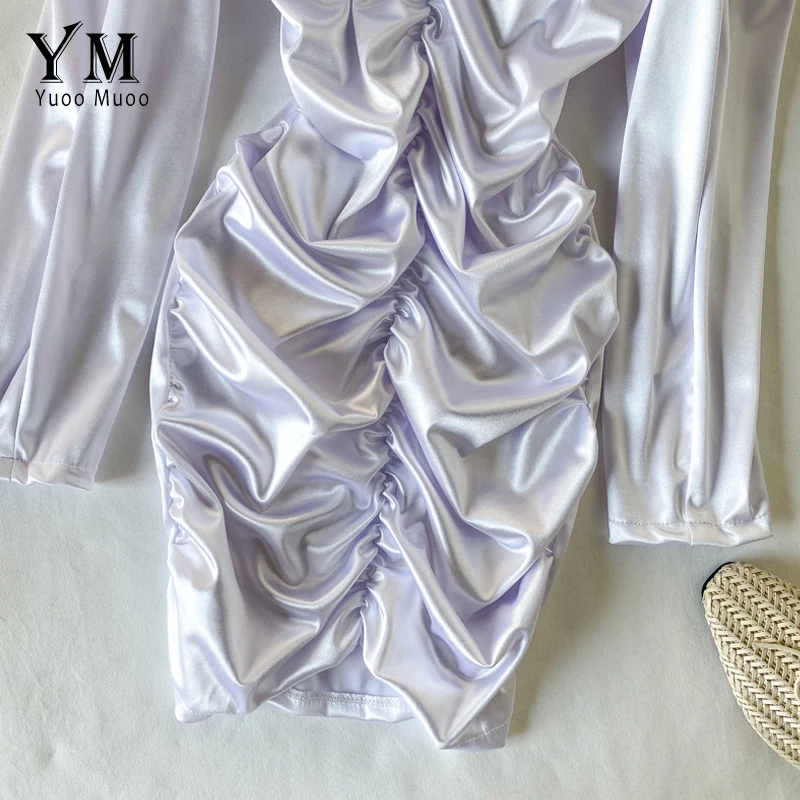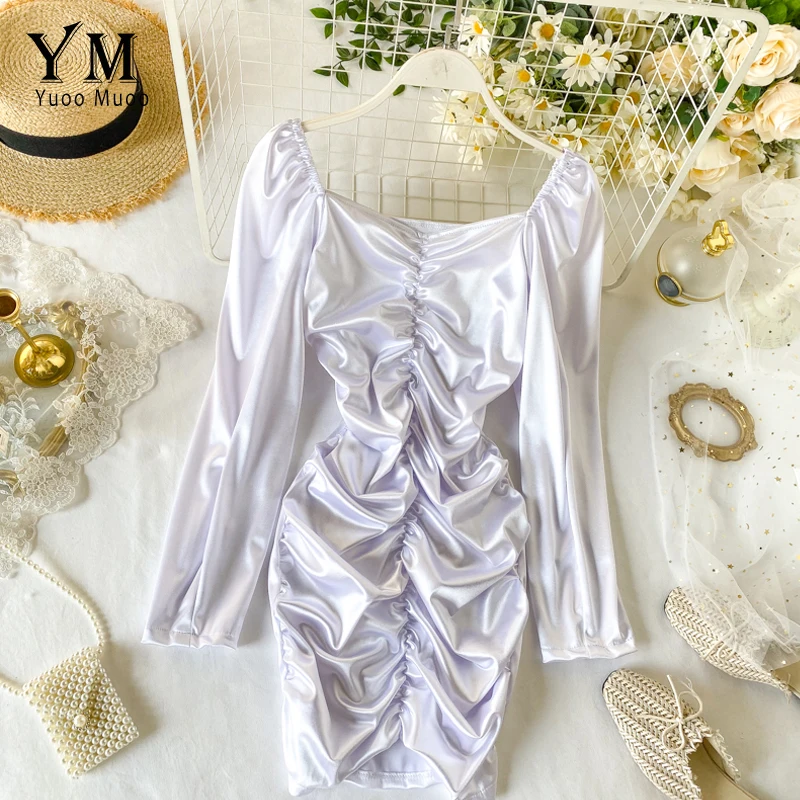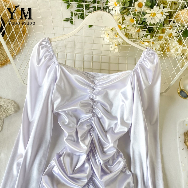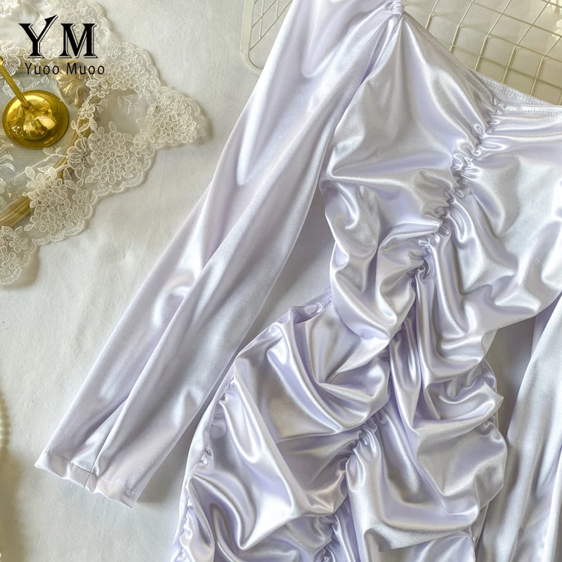 Женское атласное мини-платье YuooMuoo, с рюшами, с длинным рукавом, в европейском стиле