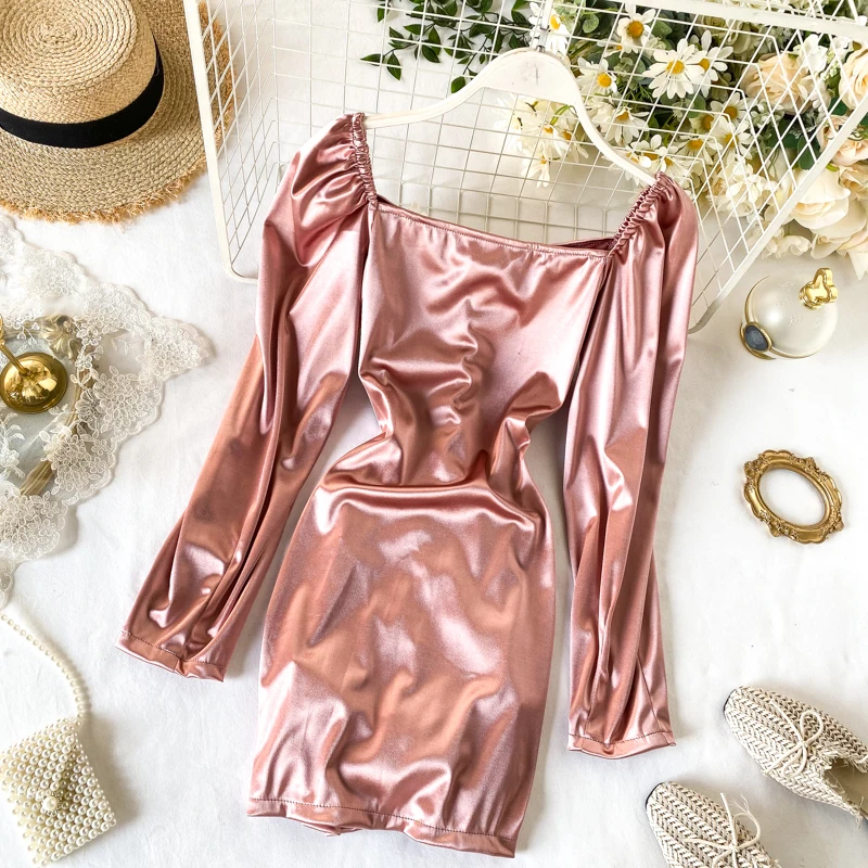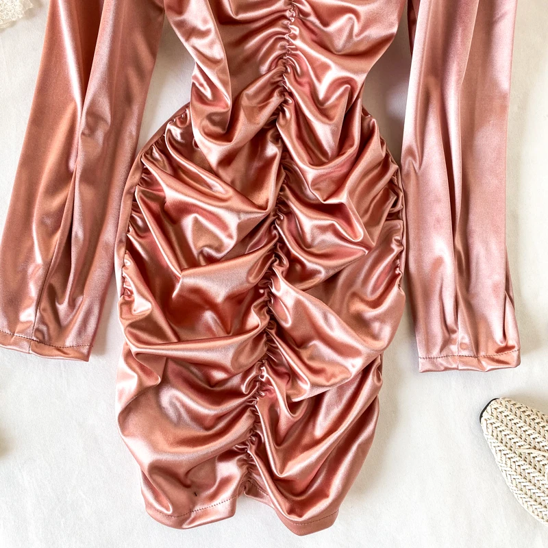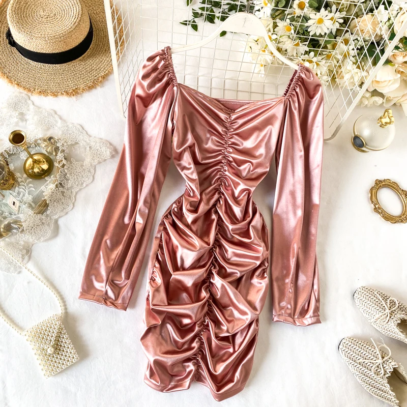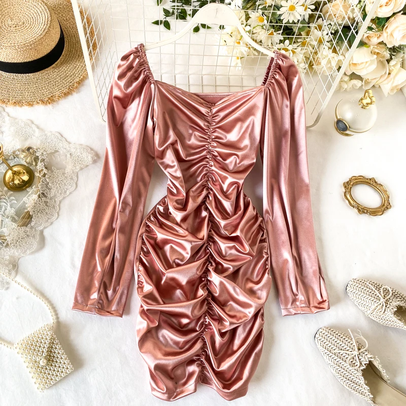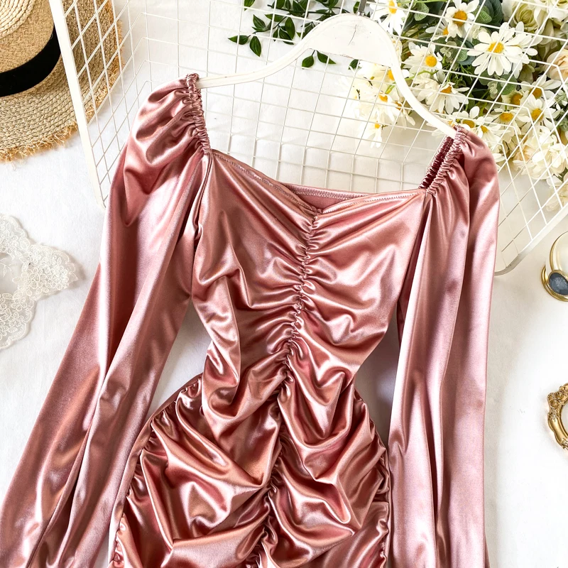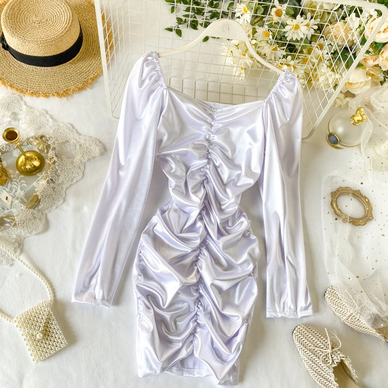 Женское атласное мини-платье YuooMuoo, с рюшами, с длинным рукавом, в европейском стиле