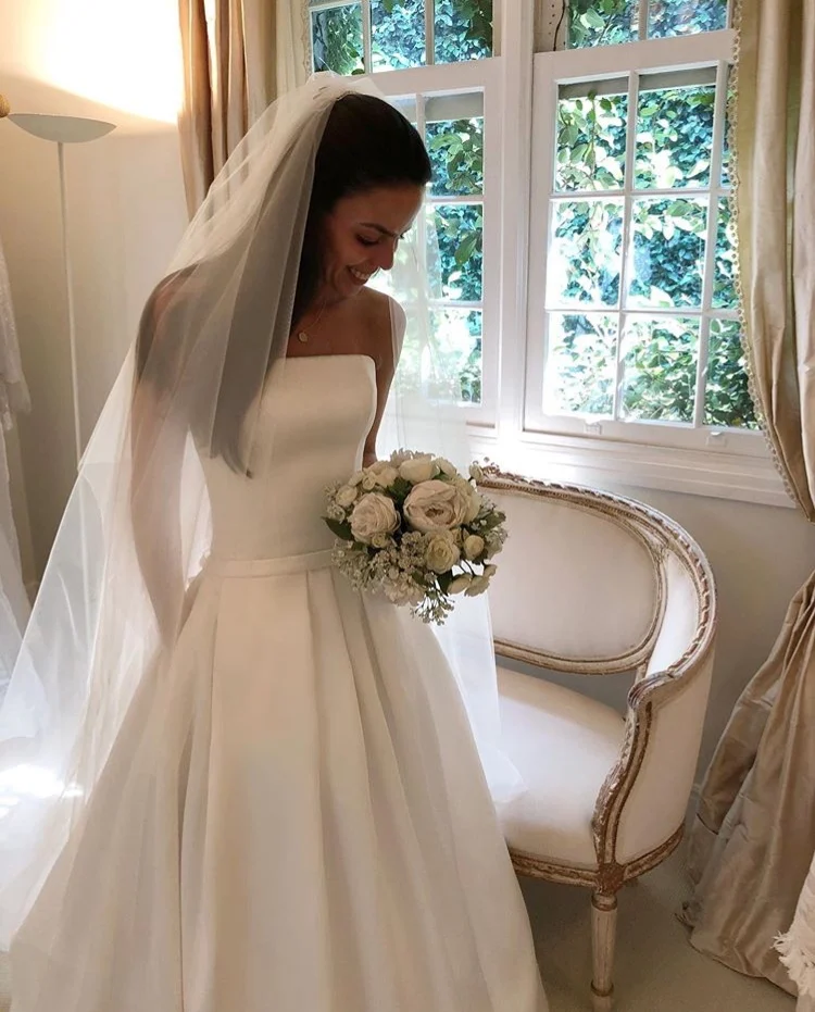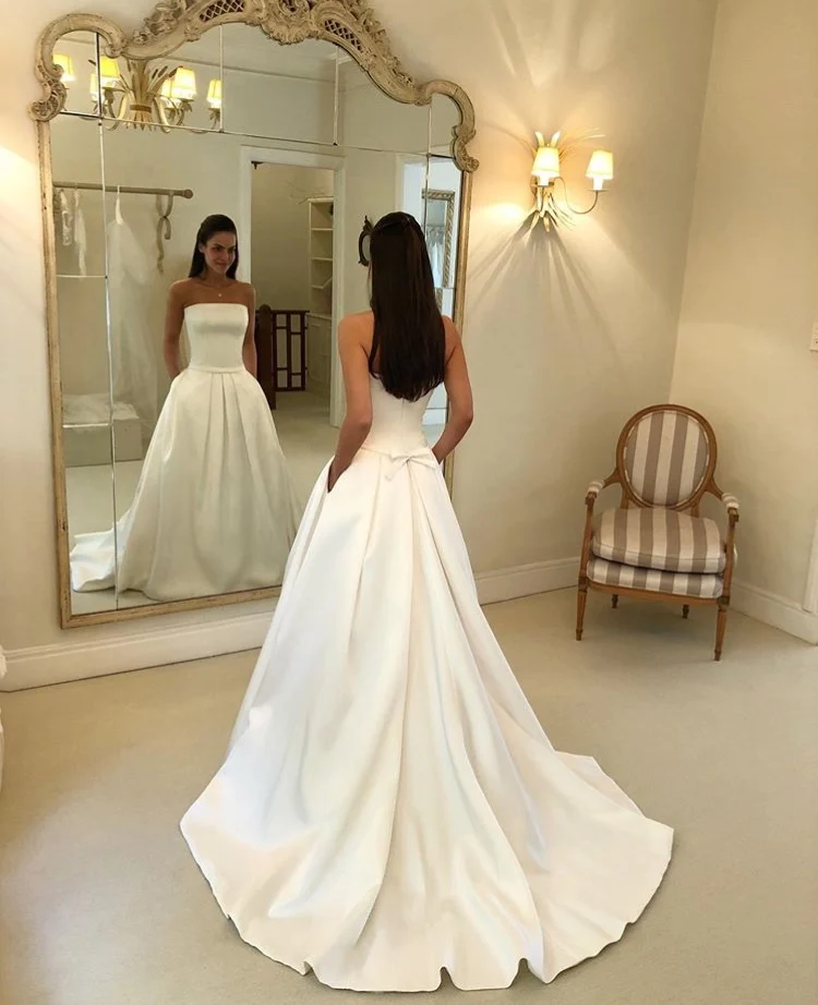 Женское атласное свадебное платье, простое ТРАПЕЦИЕВИДНОЕ ПЛАТЬЕ бе...