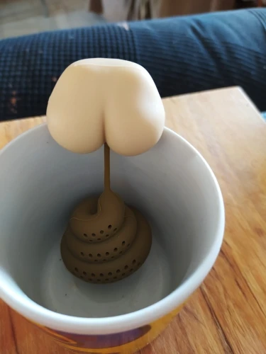 Забавный заварочник для людей с черным чувством юмора. Выглядит очень эффектно - охи и ахи, внимание к кружке обеспечены Для гранулированного чая не подходит, половина оказывается в кружке, а вот с крупнолистовым прекрасно справляется. Выполнено всë аккуратно, изъянов на обнаружено, запах резины выветрился после профилактического мытья изделия. Пришло в составе другой посылки. Покупайте, чисто на поржать) Мы с собакой - поржали)