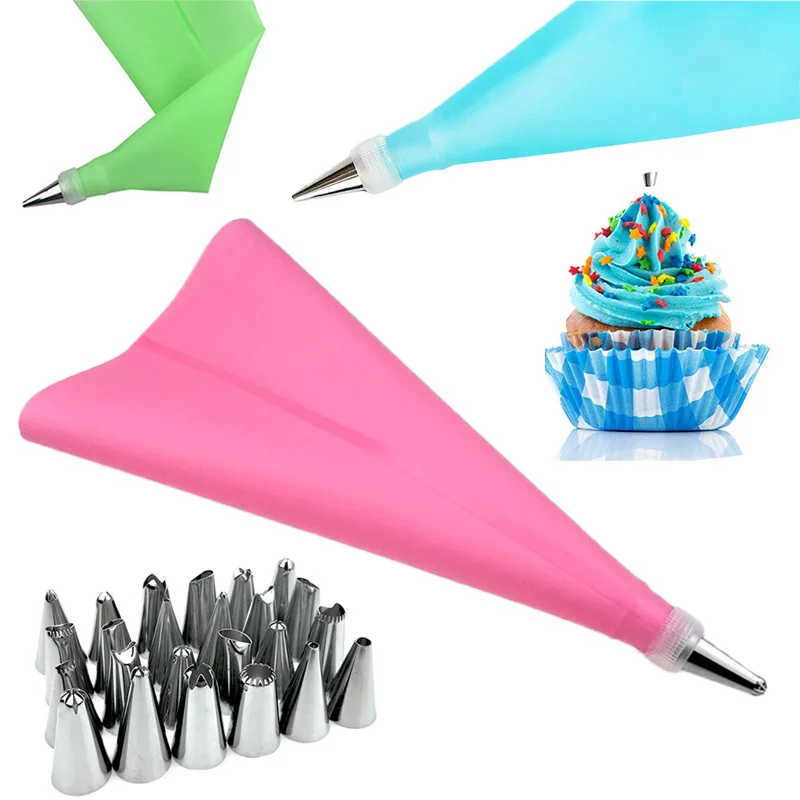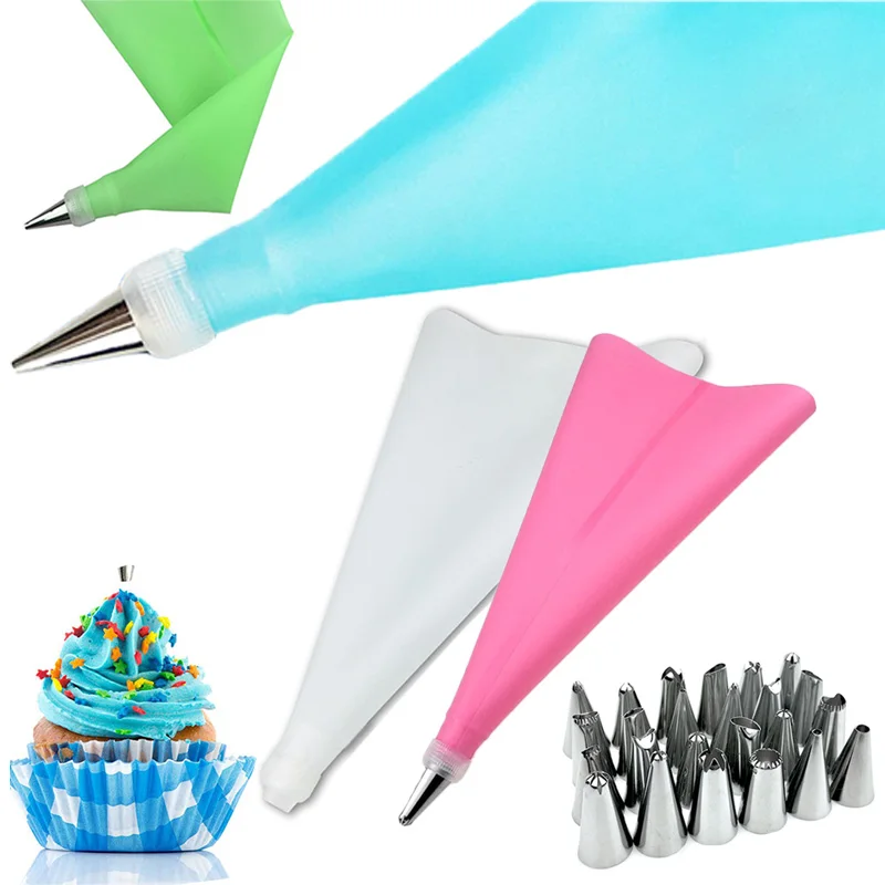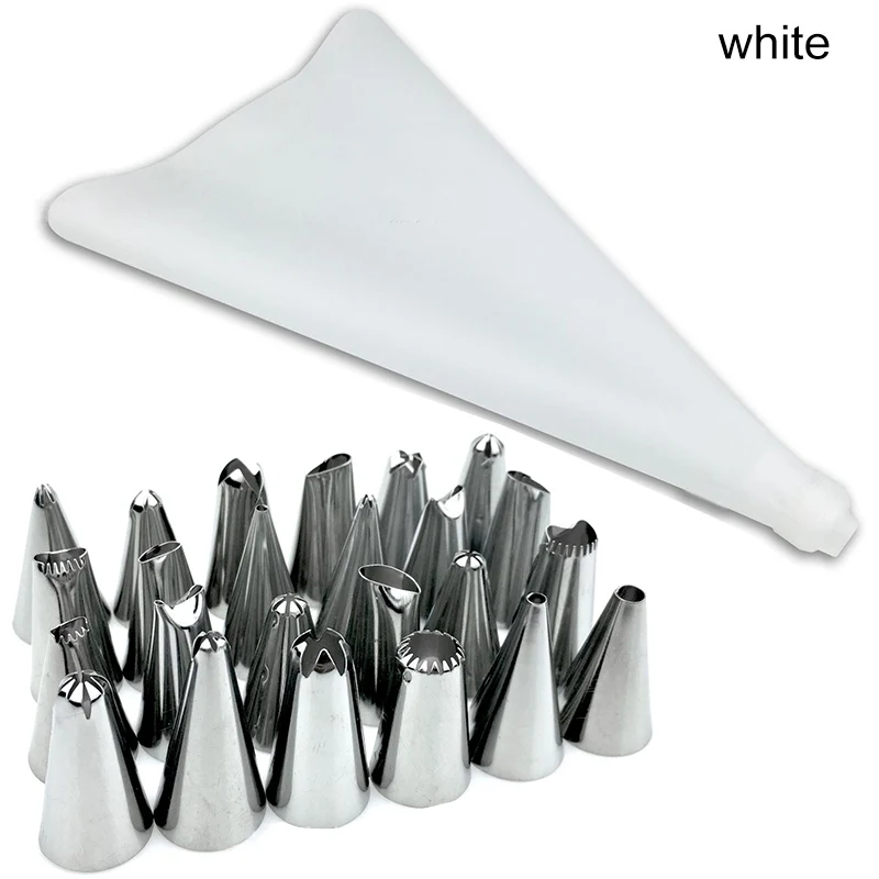 Восстановленная Кондитерская сумка с 24 шт различных типов насадка для крема и 1 шт конвертер.