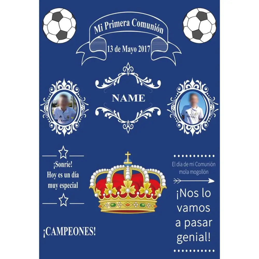 Фон для фотосъемки с изображением футбольного мяча, голубой короны ...