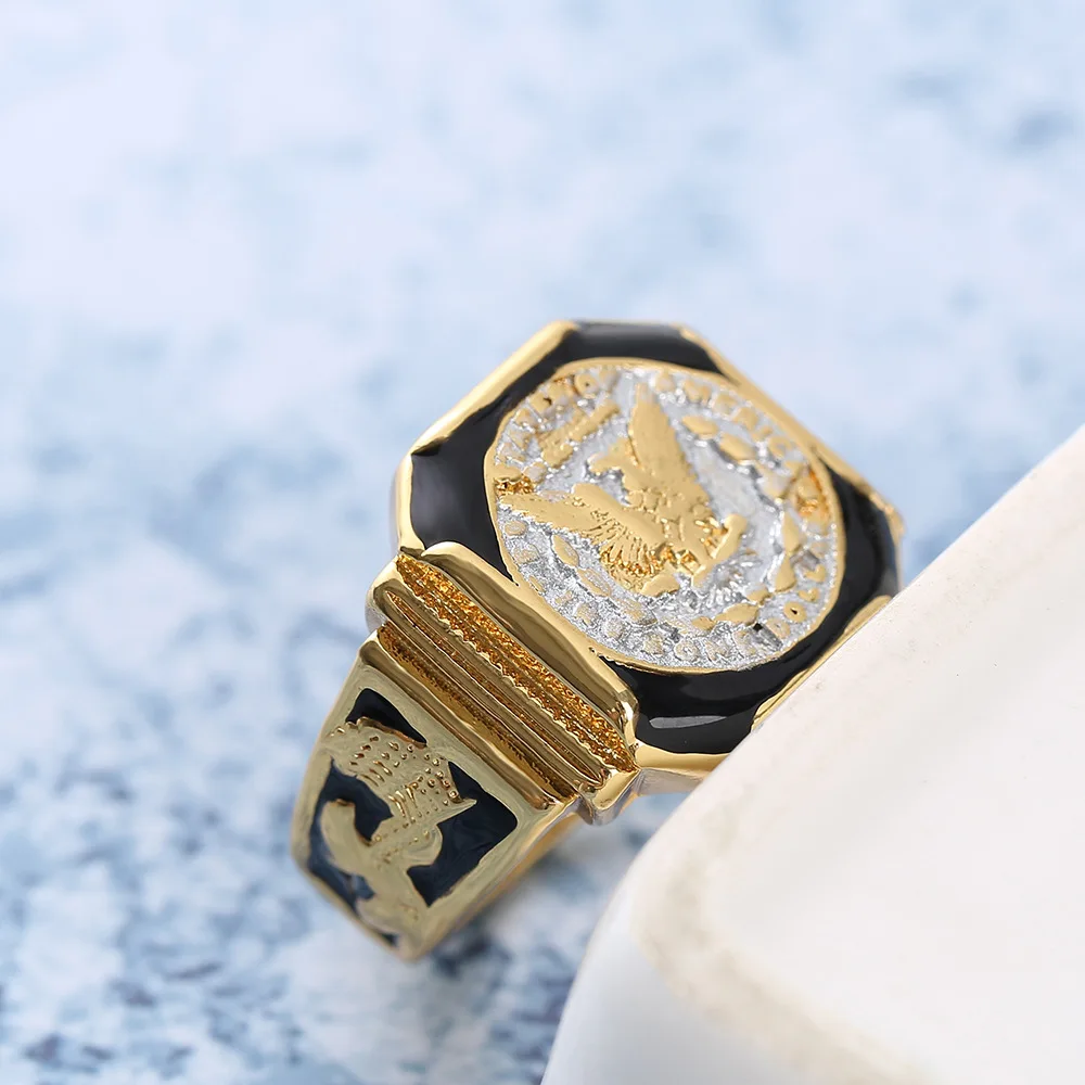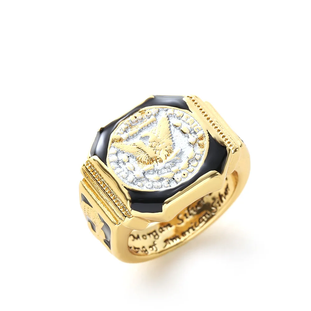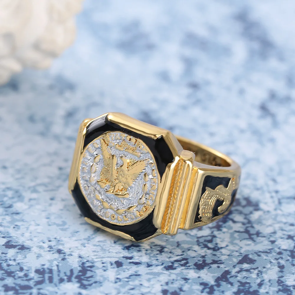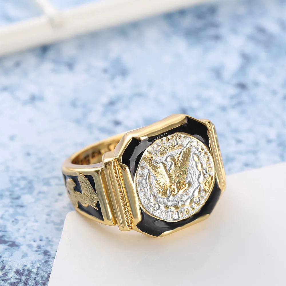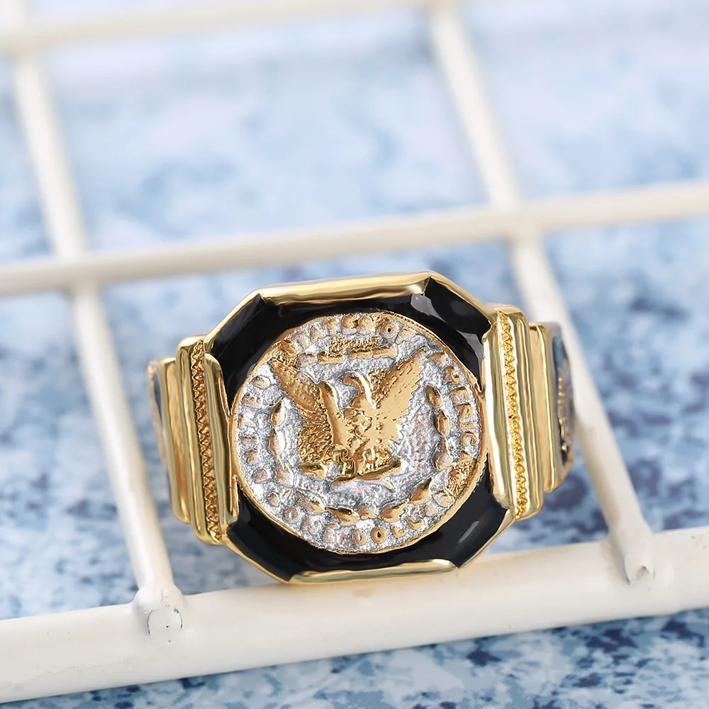 Винтажные золотистые кольца с изображением орла Моргана для мужчин, мужские кольца для мотоцикла, вечеринки, стимпанк, рок, хип-хоп, доллар, ювелирные изделия
