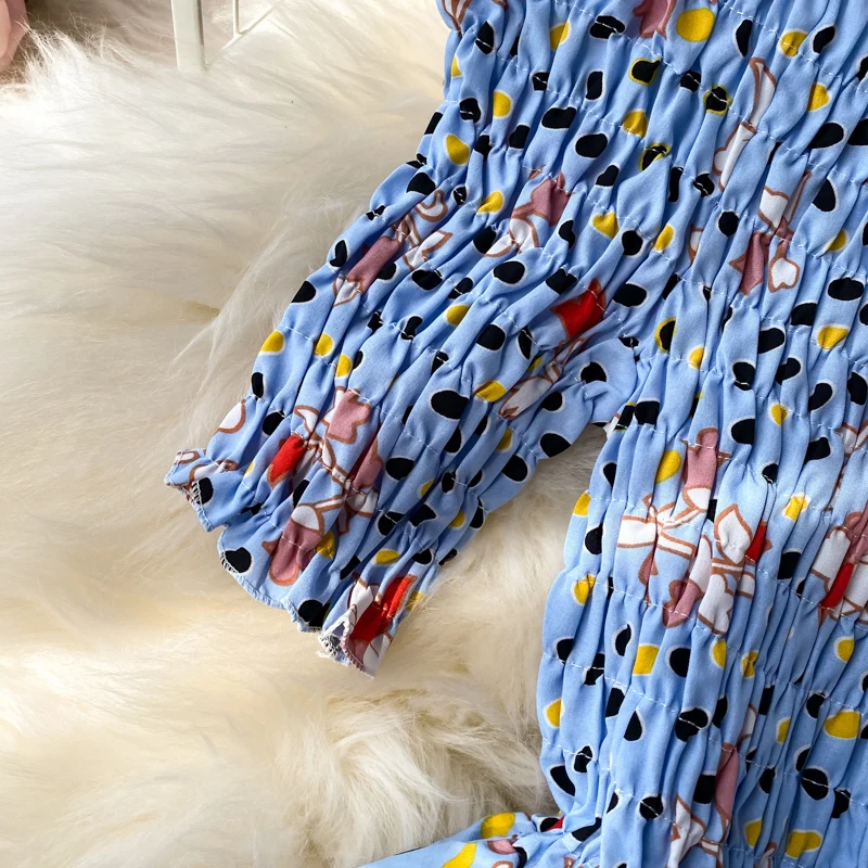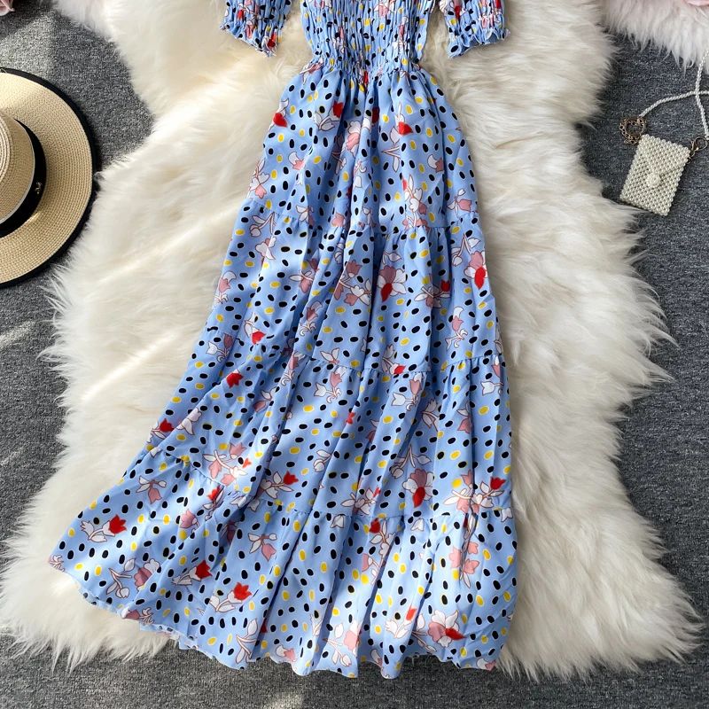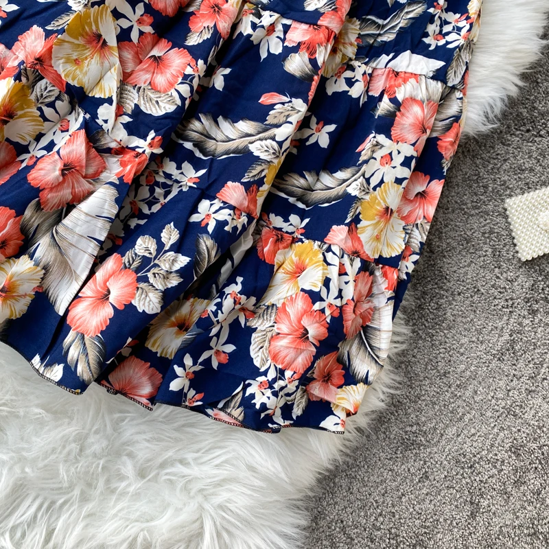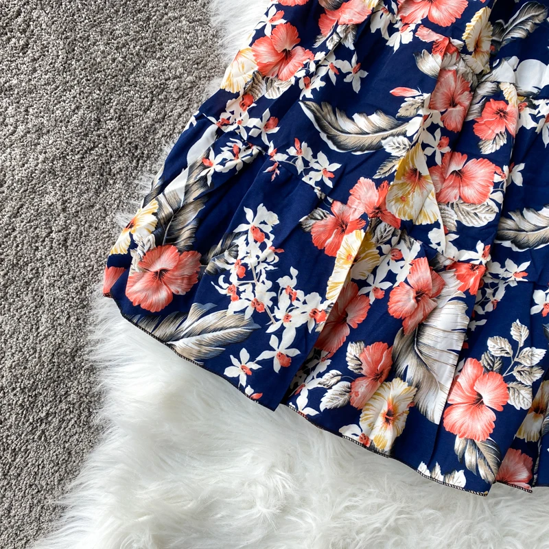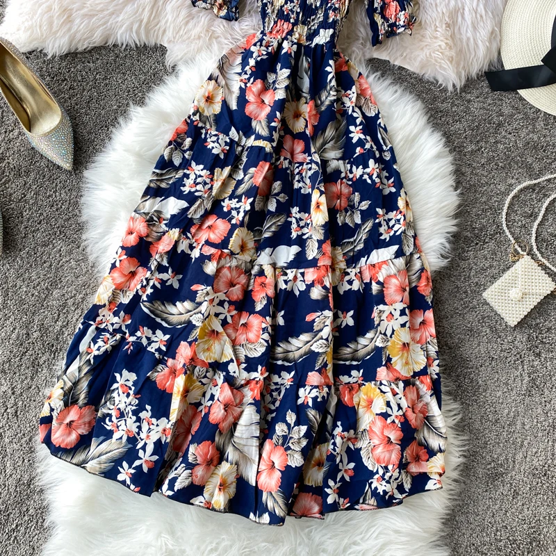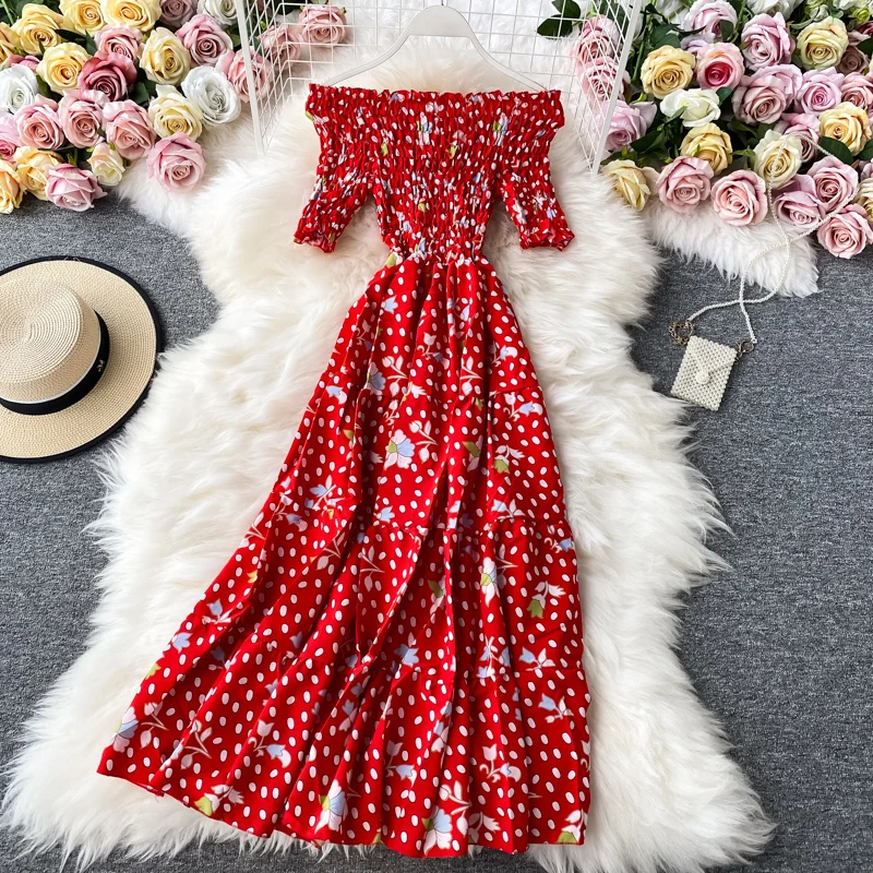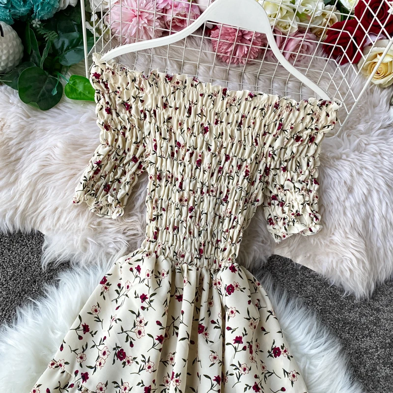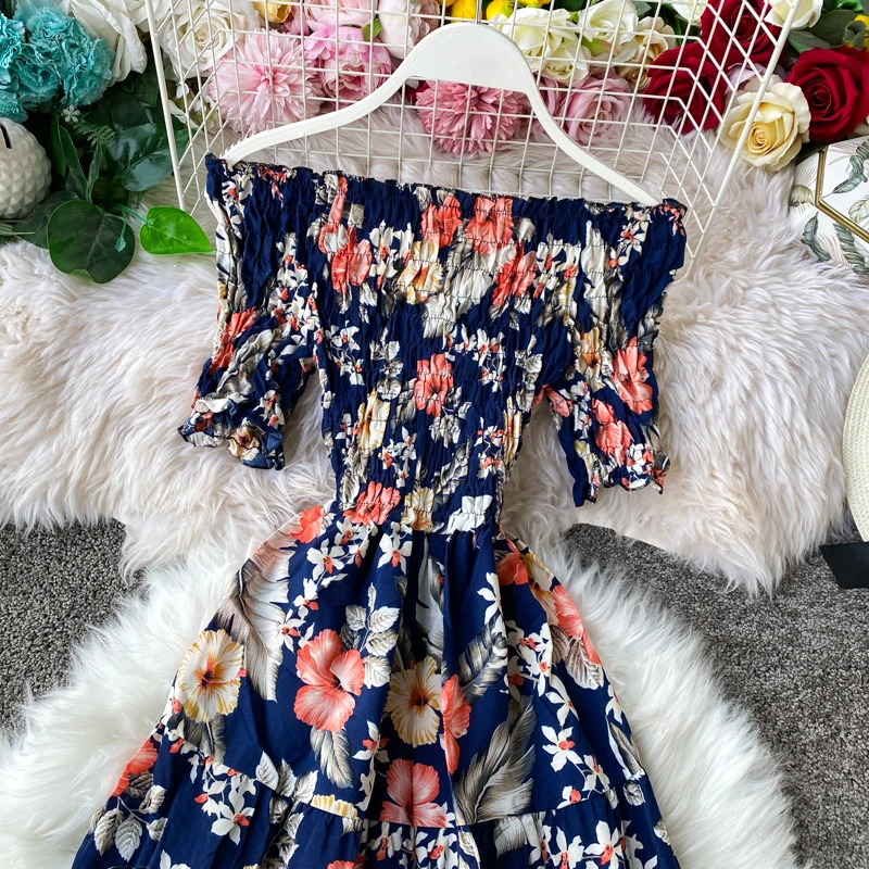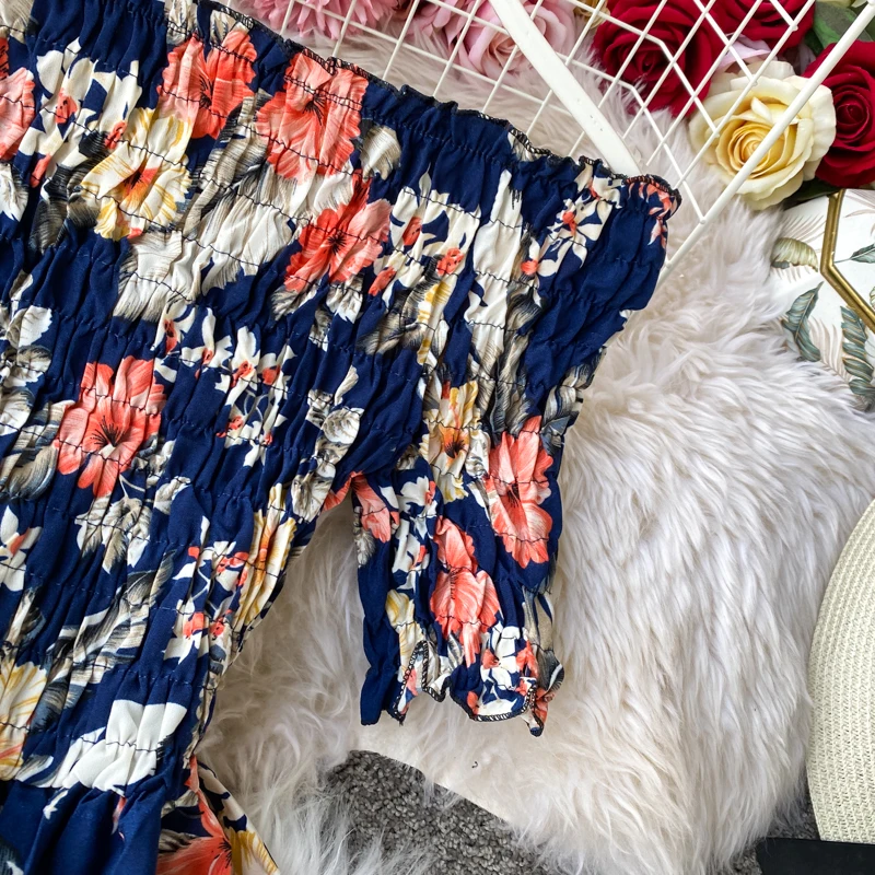 Женское винтажное платье-туника с цветочным принтом, открытыми плечами