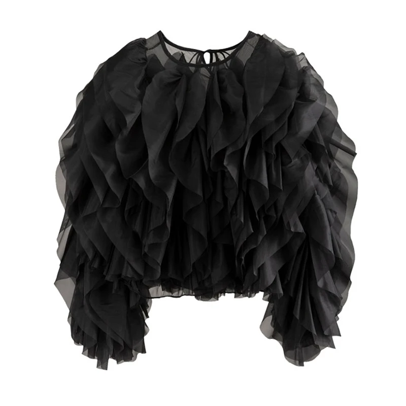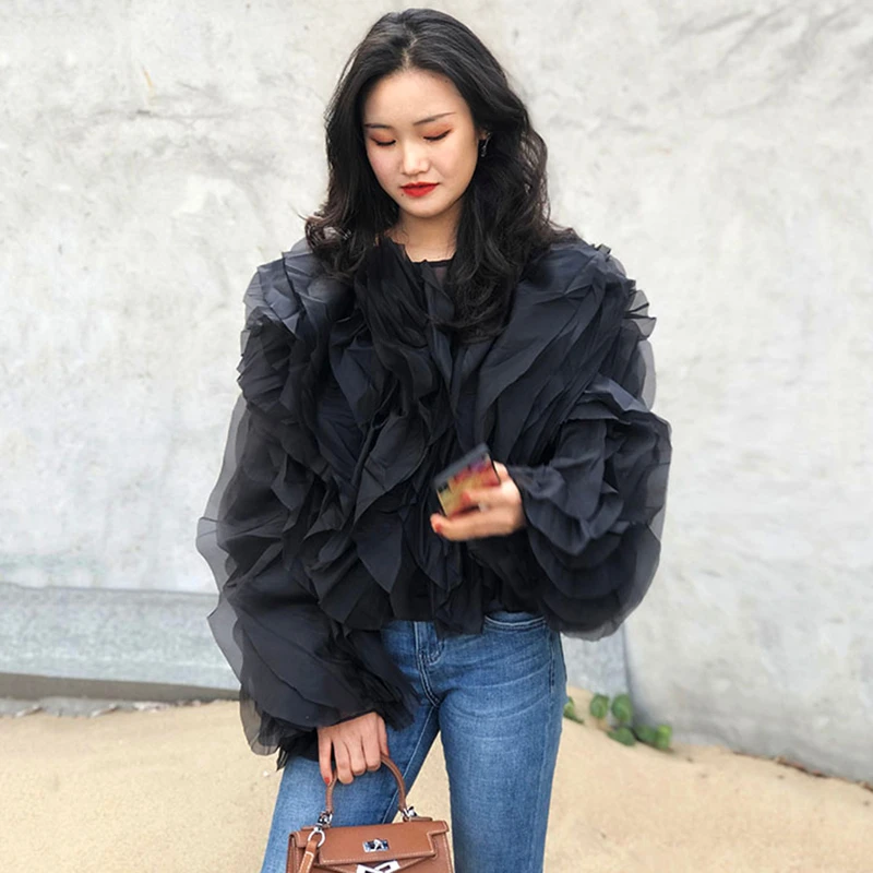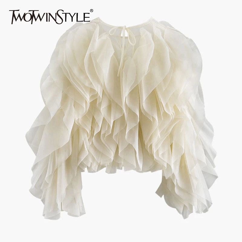 Женская шифоновая блузка TWOTWINSTYLE, с оборками, круглым вырезом, длинными рукавами-фонариками