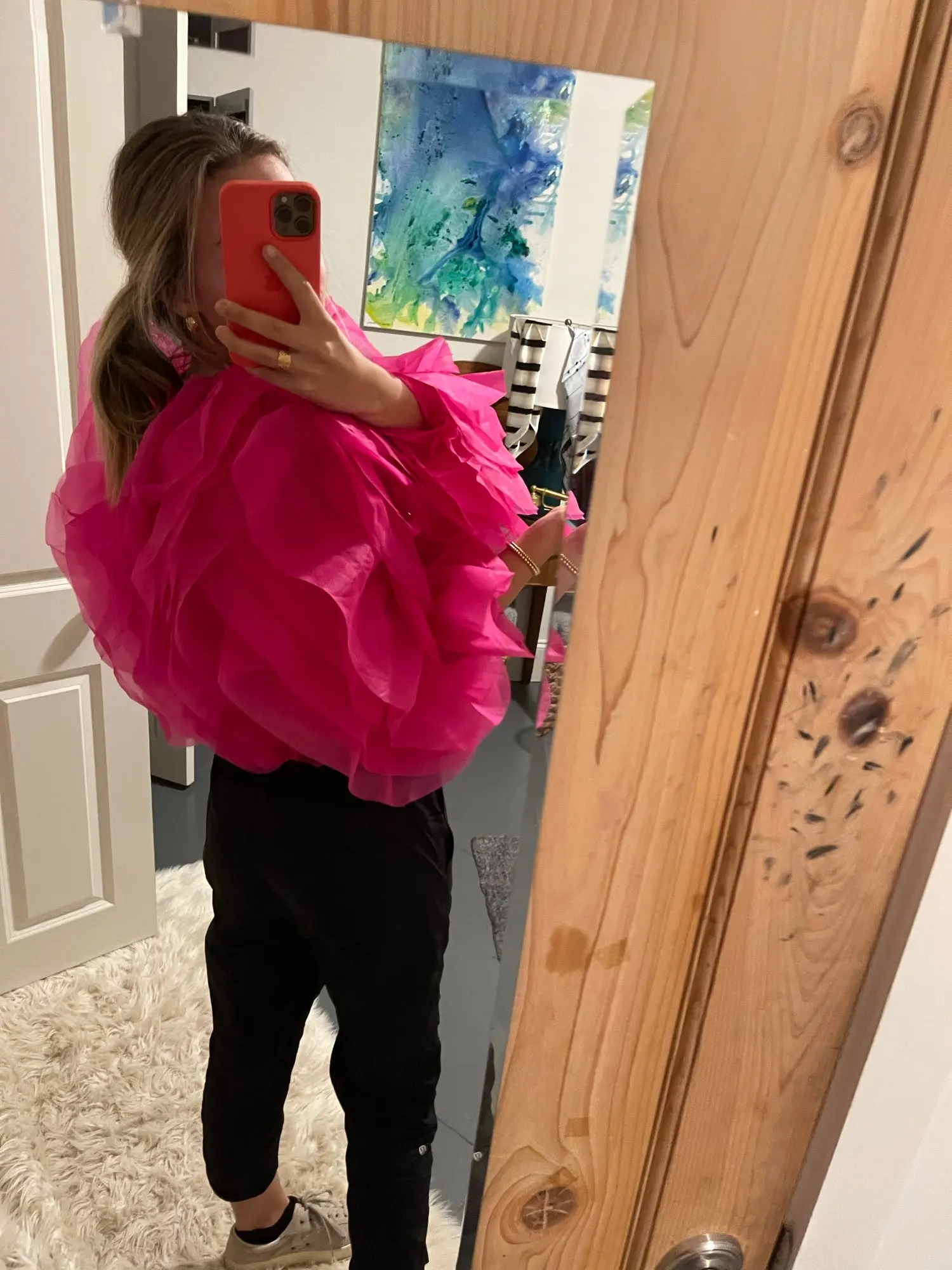 Nice top. Due to ruffles it makes the top quite big on the outside. Fits well as per sizing chart. 4wks delivery to Australia.