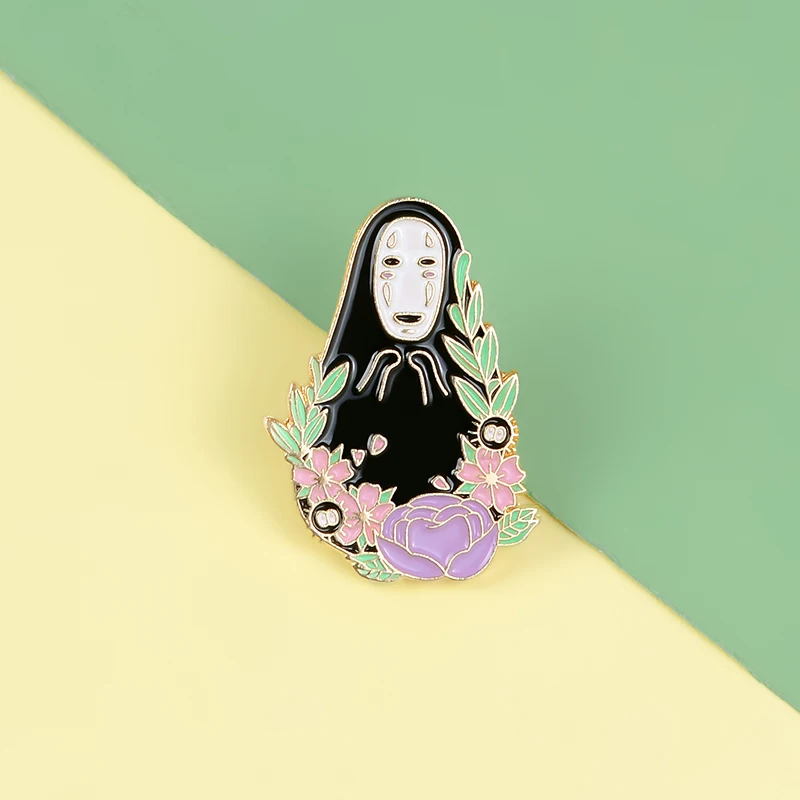 Черная эмалированная булавка призрака, брошь с цветами из аниме, Нагрудный значок, шапка, рюкзак, булавка, мультяшная бижутерия, подарки