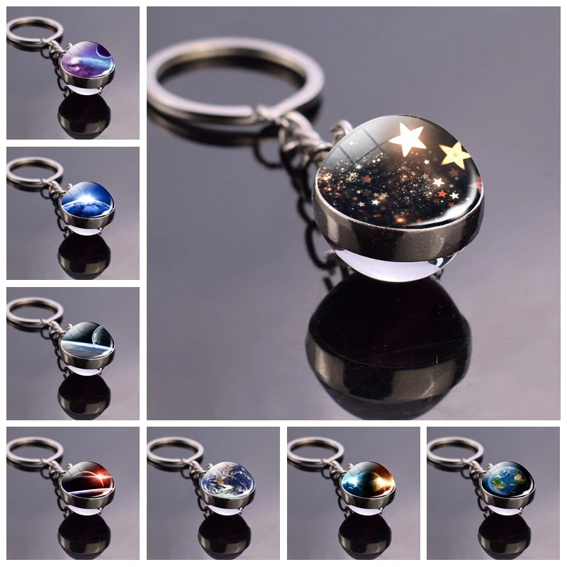 Звезды, луна, галактика, земля, стеклянный шар, брелок, планеты, туманности, искусство, рисунок, сфера, шар, брелок, модный брелок, бижутерия на день рождения, подарок