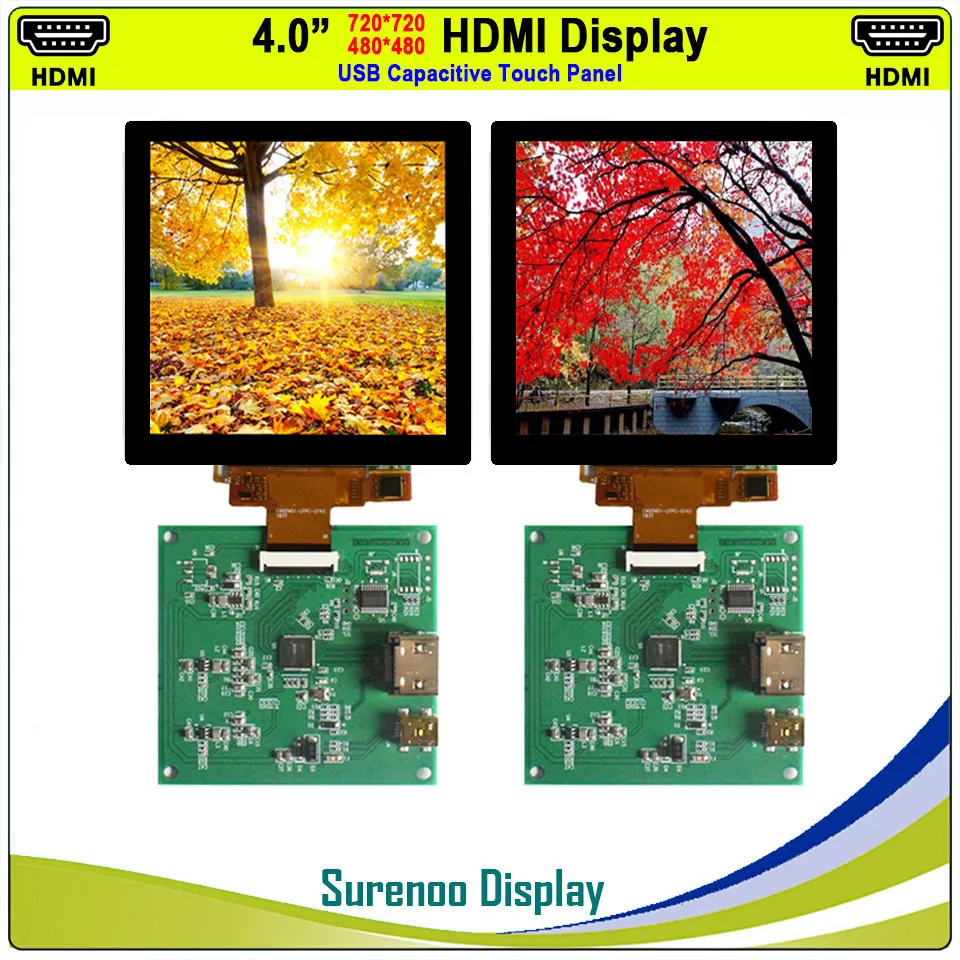 4,0 "720X720480X480 1:1 HDMI-совместим с ЖК-модулем MIPI IPS, экран монитора с емкостной сенсорной панелью USB