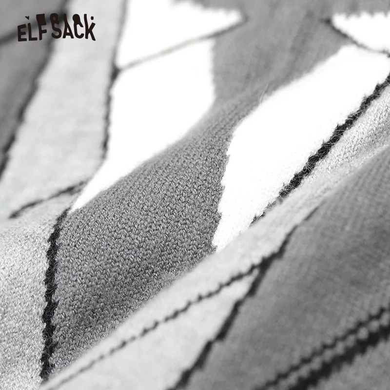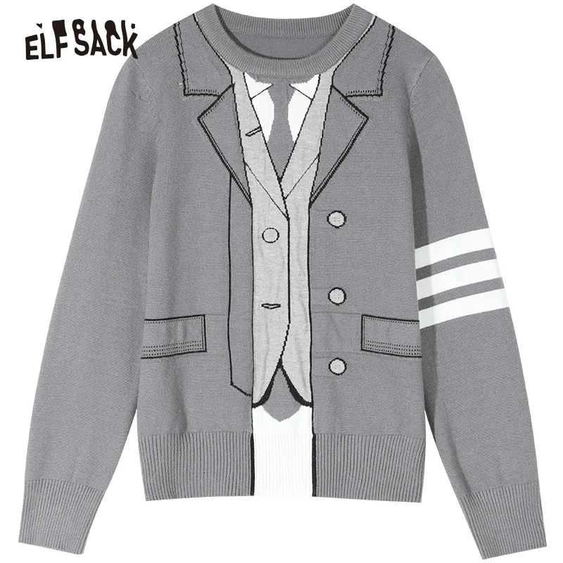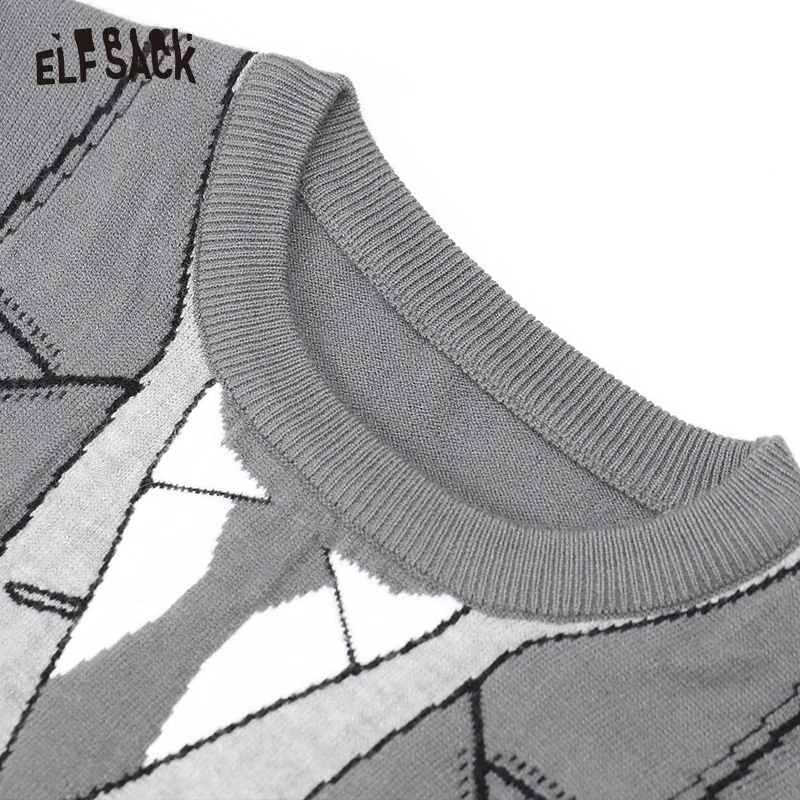 Женский трикотажный пуловер ELFSACK, Черный Повседневный пуловер с принтом в Корейском стиле, с длинными рукавами, базовые Топы, зима 2020