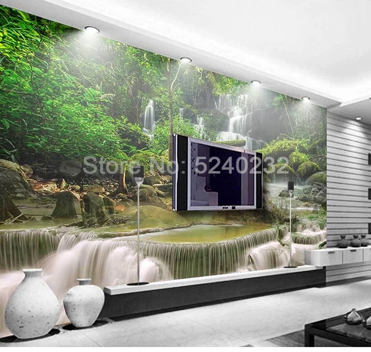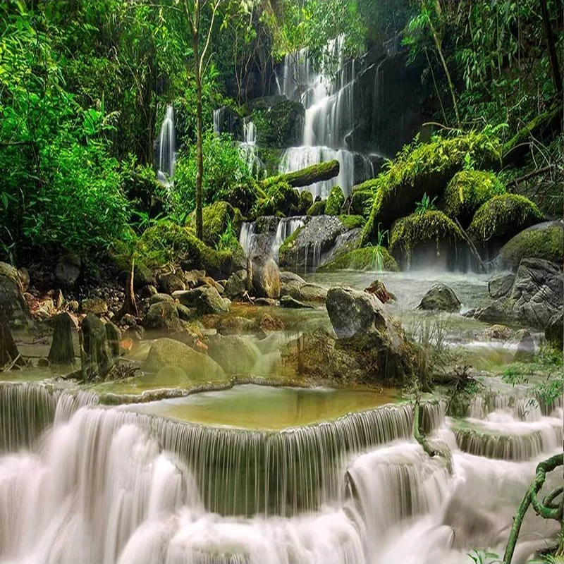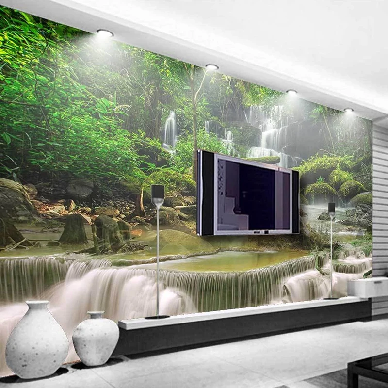 3D настенные фрески любого размера на заказ, обои, Зеленый пейзаж, лес, водопад, Фотофон, настенная живопись