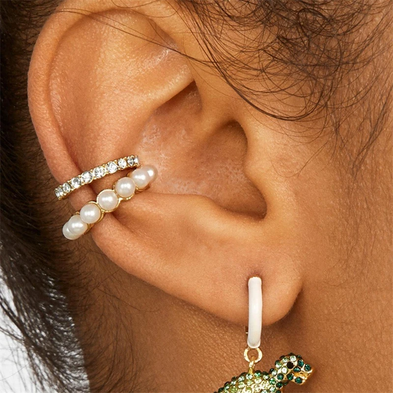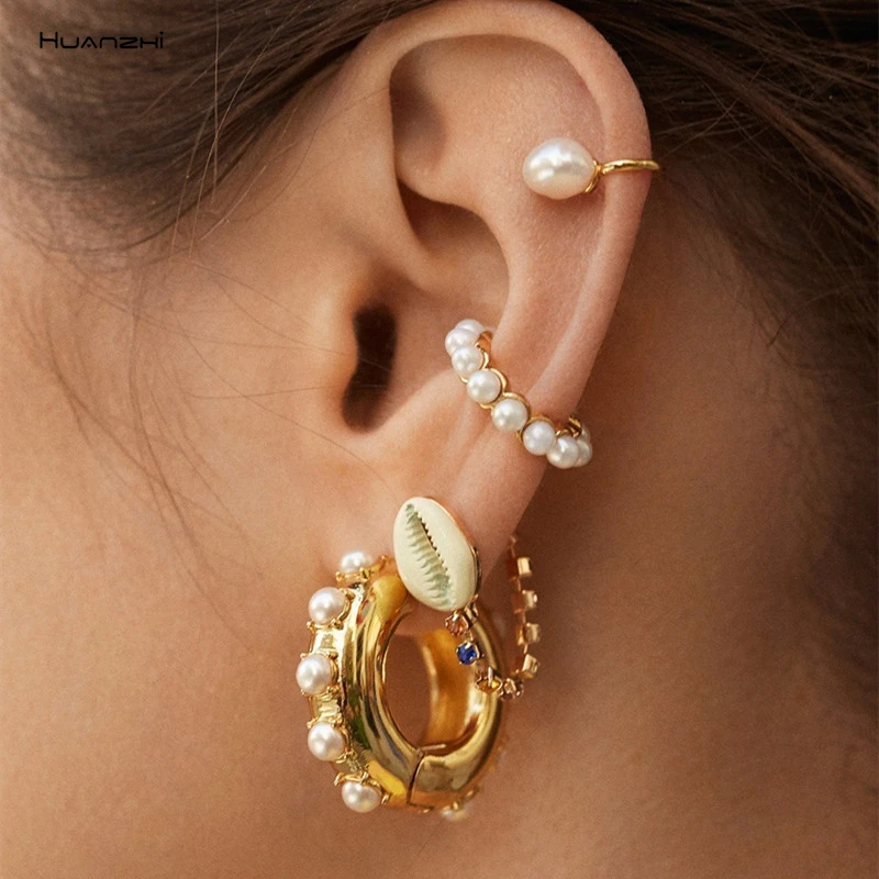 HUANZHI 2020 НОВЫЕ геометрические маленькие круглые металлические клипсы для ушей C Форма жемчужные ушные манжеты без пирсинга необходимые серьги для женщин вечерние подарок