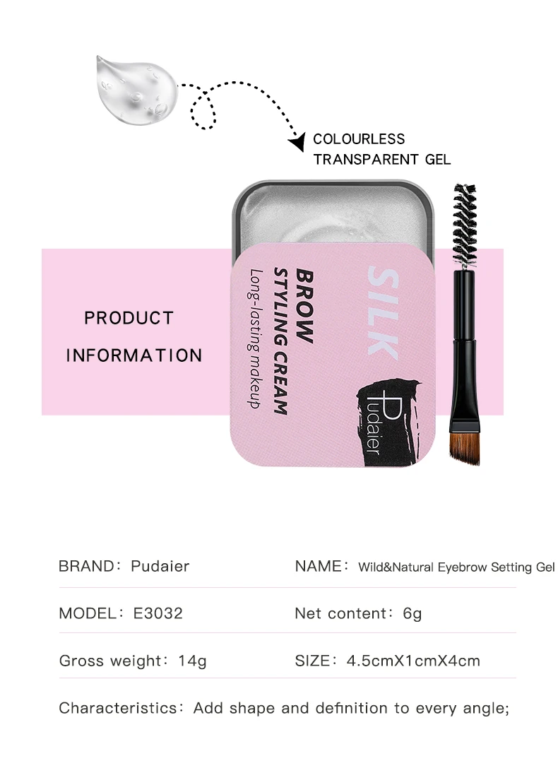 Детали: Название: крем для укладки бровей Pudaier Вес нетто: 6 г Цвет: прозрачный