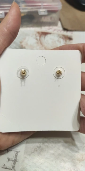 Отличные сережки, не погнулись при доставке, хотя пакет проткнули. Есть запасные ограничители