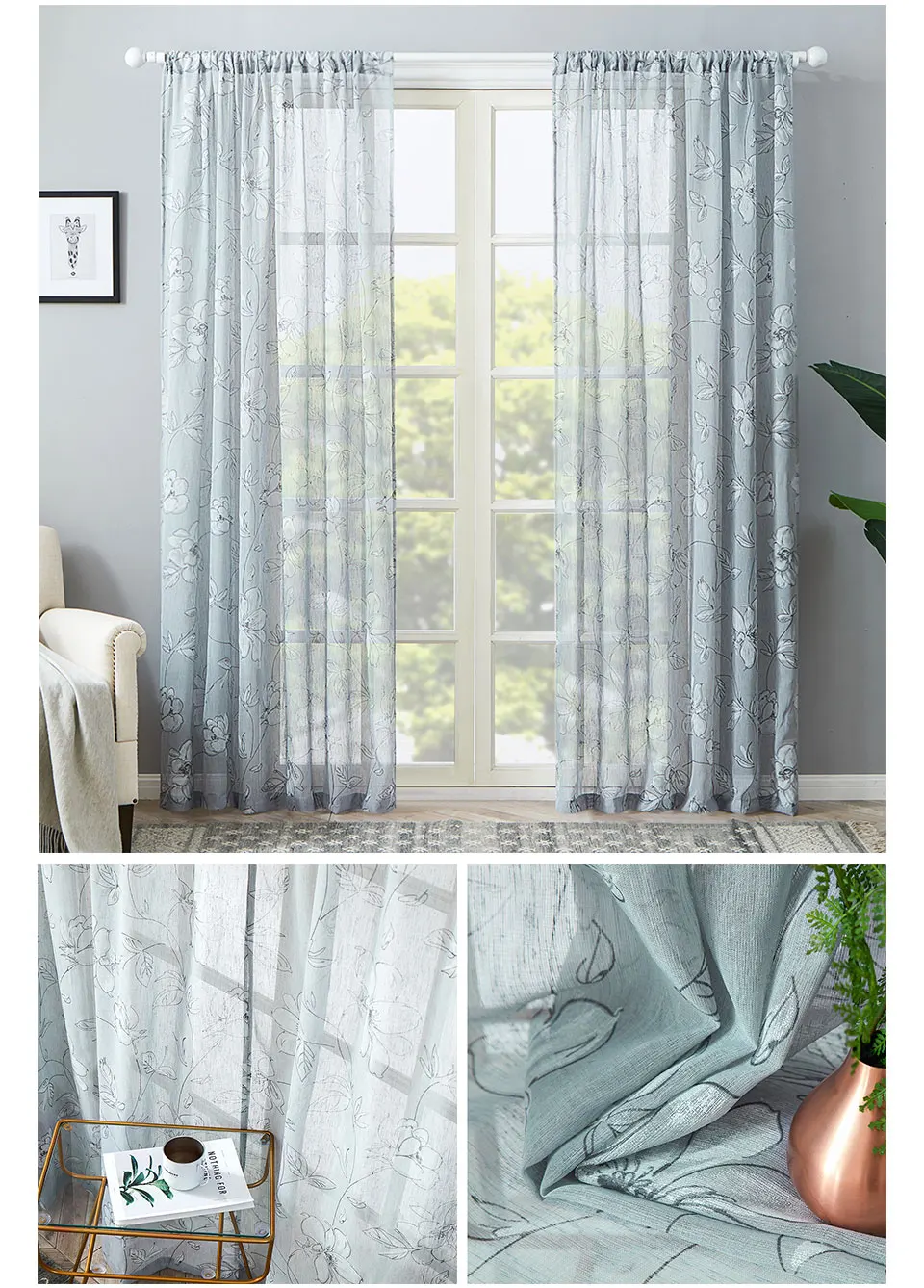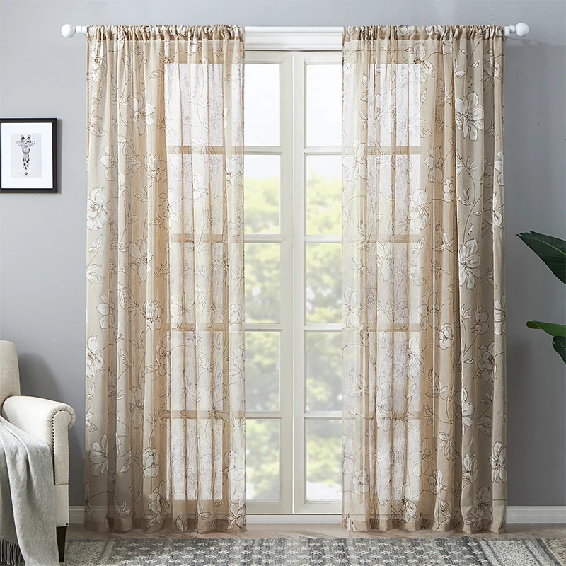 Полупрозрачные шторы MRTREEES с вышивкой для гостиной, спальни, око...