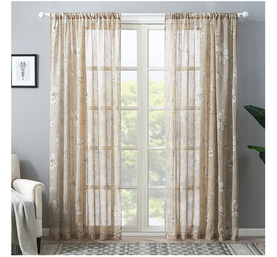 Современные тюлевые шторы на окна с цветочным принтом, прозрачные Занавески для гостиной, спальни, кухни, занавески, вуаль, дверь