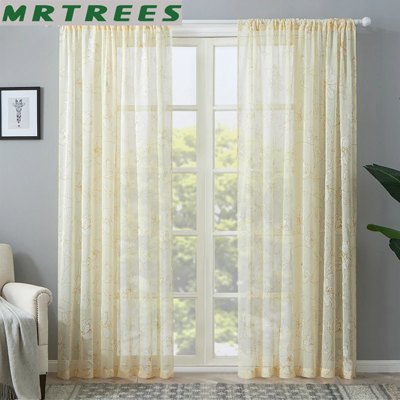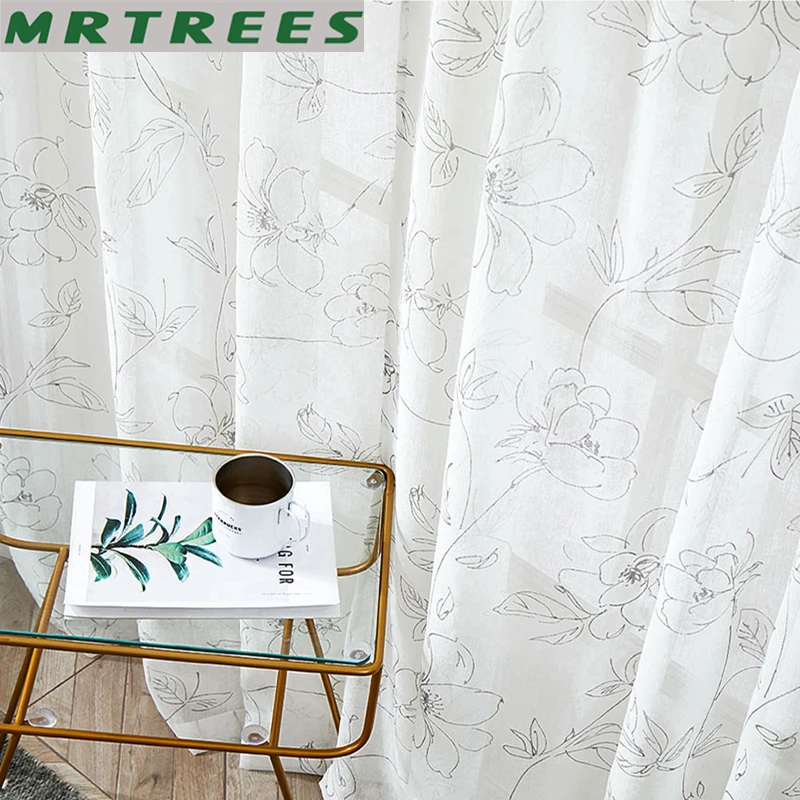 Тюль MRTREES с цветочным принтом, прозрачные шторы для гостиной, сп...