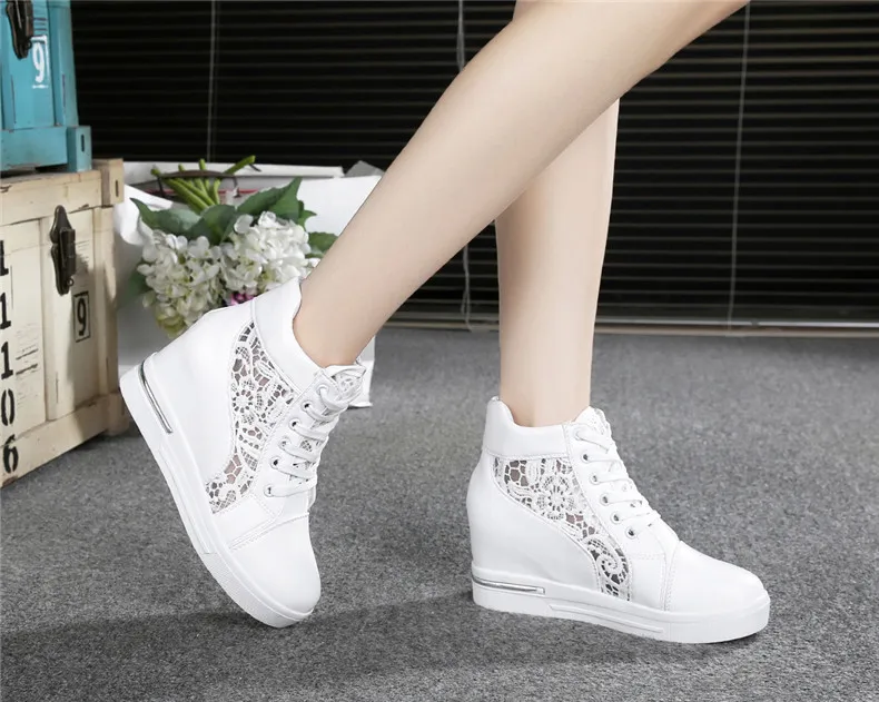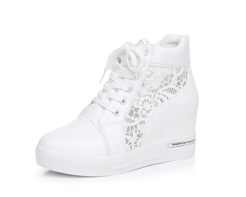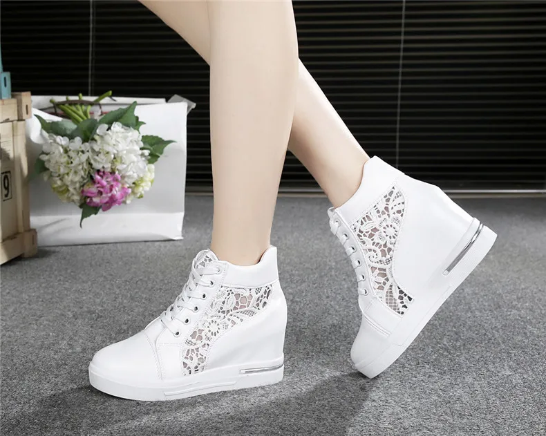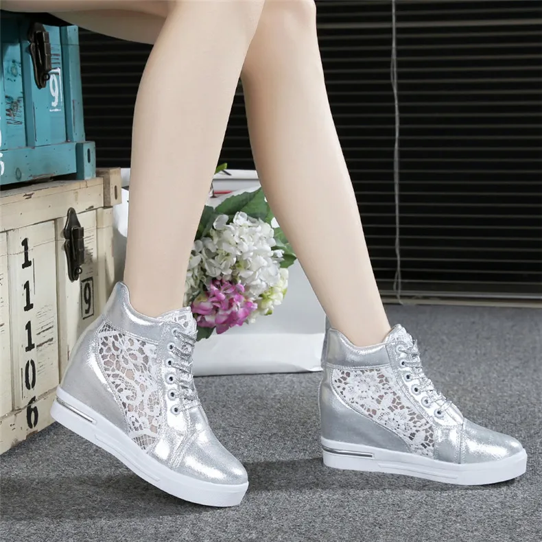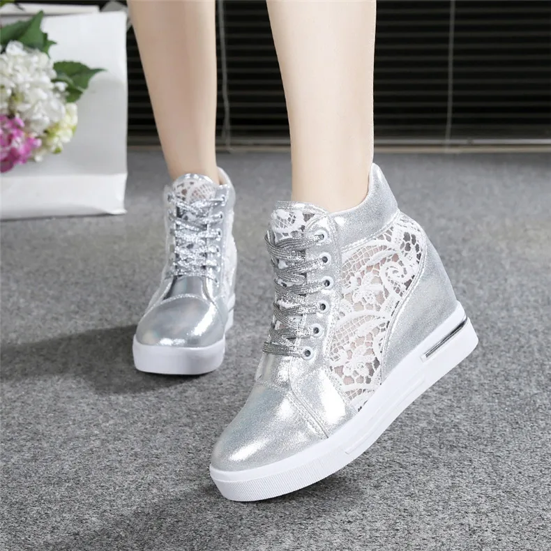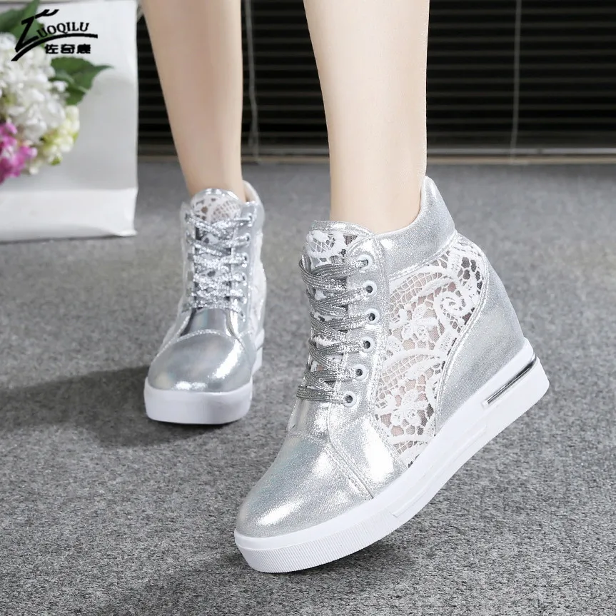 Женские кроссовки с вулканизированной подошвой, белыеСеребристые повседневные кроссовки на платформе, со шнуровкой, увеличивающие рост, 2020