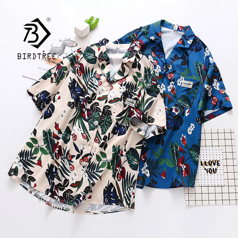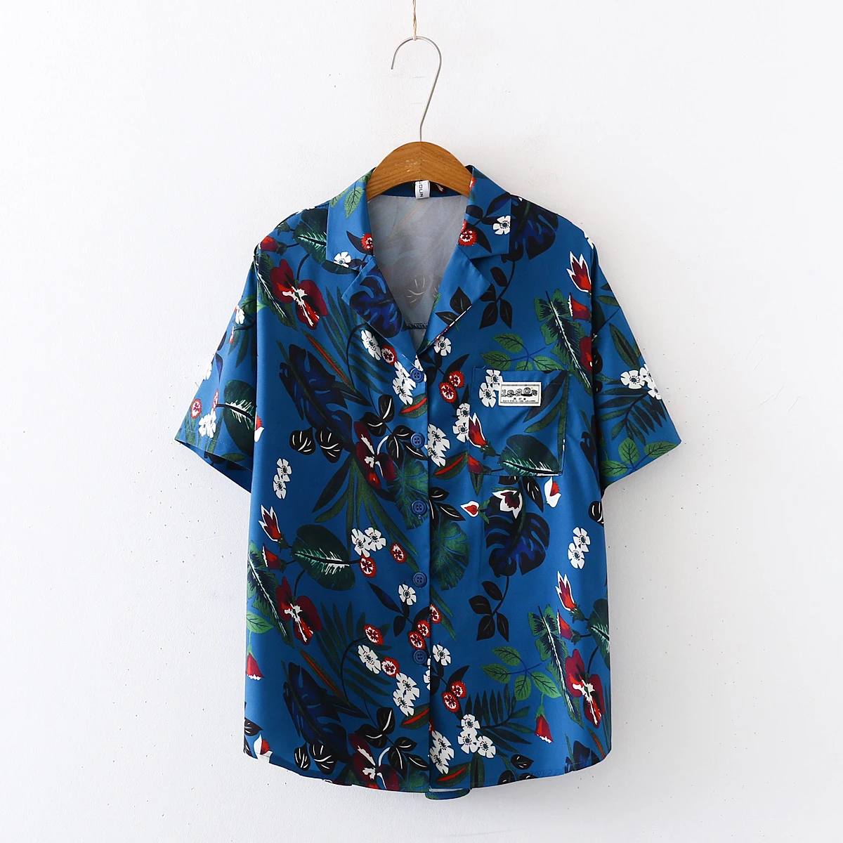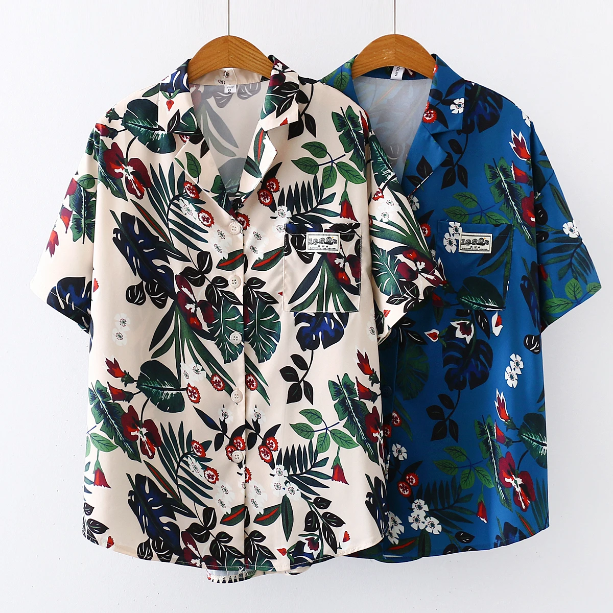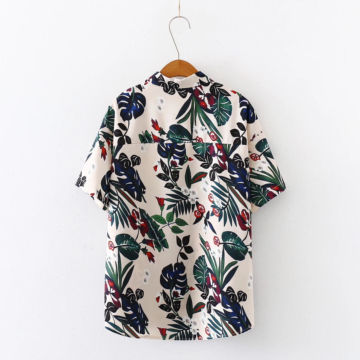 Женская блузка с принтом в виде пальмовых листьев, винтажная свободная пляжная рубашка с коротким рукавом и отложным воротником, модель T01123T, лето 2020