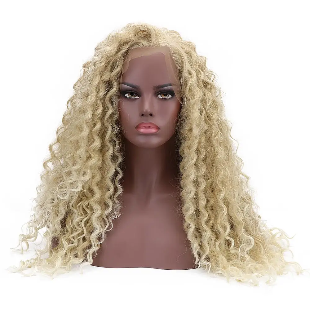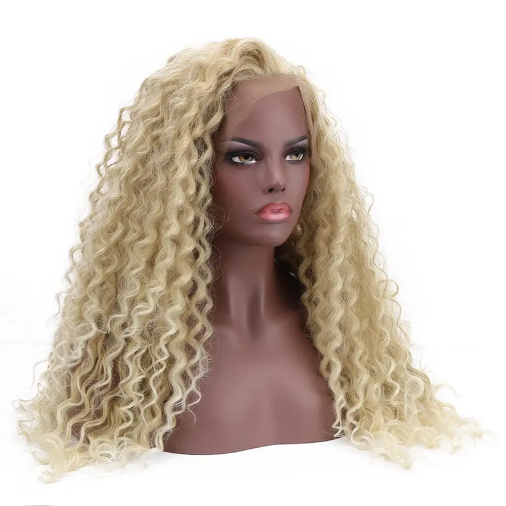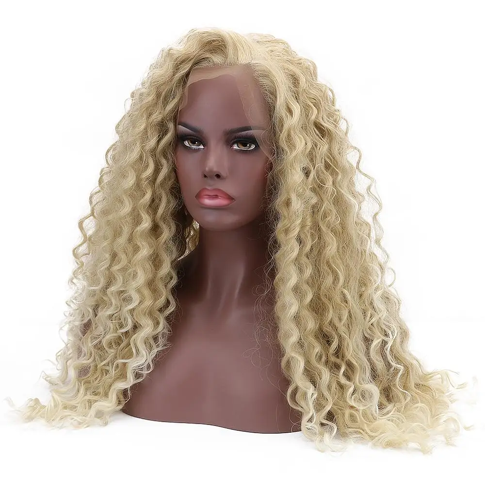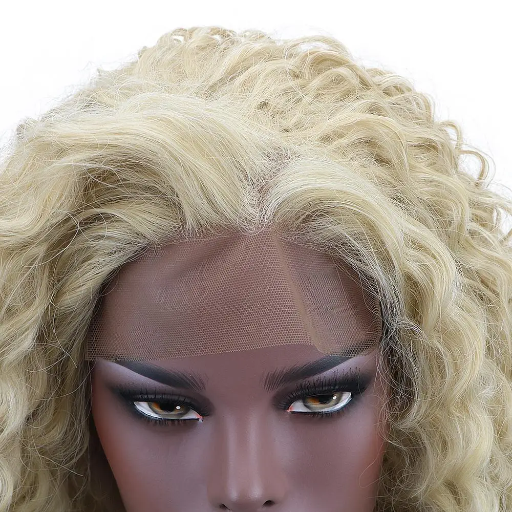 24 ''длинные кудрявые синтетические 15*4,5 Швейцарский парик на фронтальной сетке глубокий блонд богемные натуральные части безклеевые афро парики для чернокожих женщин
