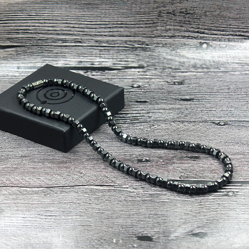 Ожерелье для мужчин и женщин, черное винтажное ожерелье из гематита и целебной терапии, HN022