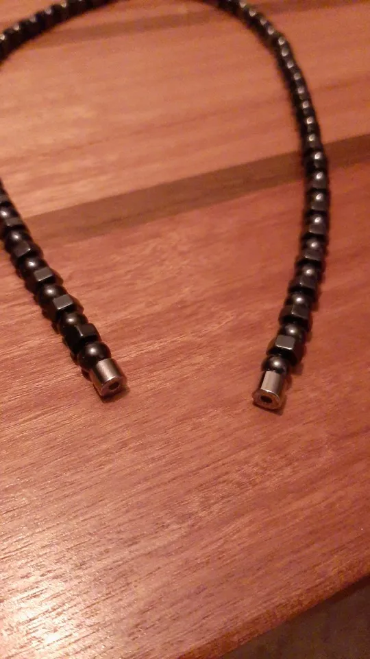 Я очень доволен этим магнитным ожерельем. Магниты очень прочные. Каждый раз, когда я снимаю его, я просто ставлю его на металлическую поверхность, холодильник или металлическую вешалку для полотенец и т. д., и он прилипает к любой металлической поверхности, как сильный клей. Я рад, что купил два ожерелья, чем длиннее для меня, тем меньше 45 см, просто не смейся, для моей собаки :) о, и я сказал это, действительно красиво! Я буду покупать больше у этого продавца в качестве подарка для друзей. Люблю их! Я настоятельно рекомендую этого продавца!