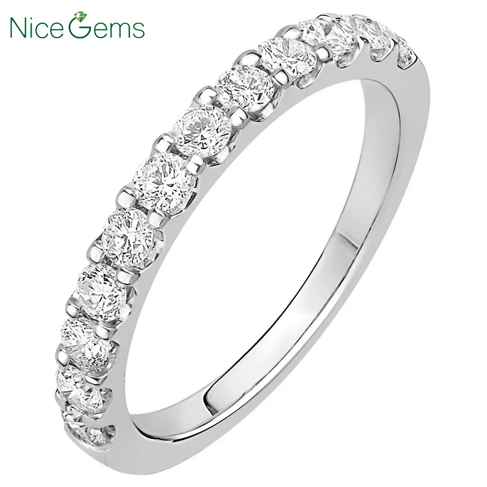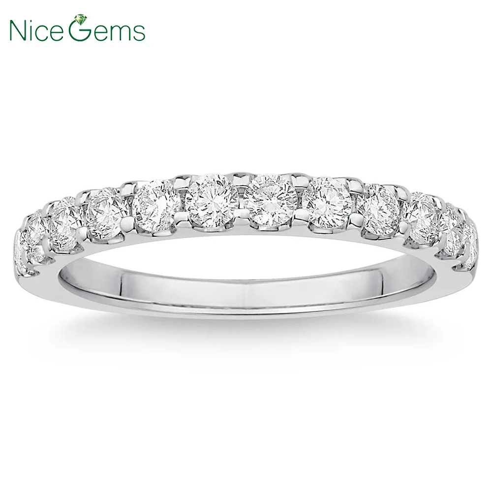 NiceGems, 14 k, белое золото, круглая, блестящая, 0,63 ctw, Муассанит, обручальное кольцо, кольцо на годовщину, обручальное кольцо, VVS1, ясность
