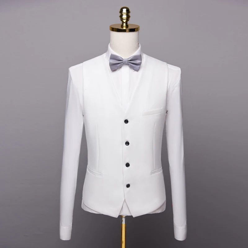 Мужской облегающий костюм, костюм из 3 предметов, свадебные костюмы, одежда для жениха, смокинг, белая куртка, жилет, брюки, официальное платье, мужской костюм