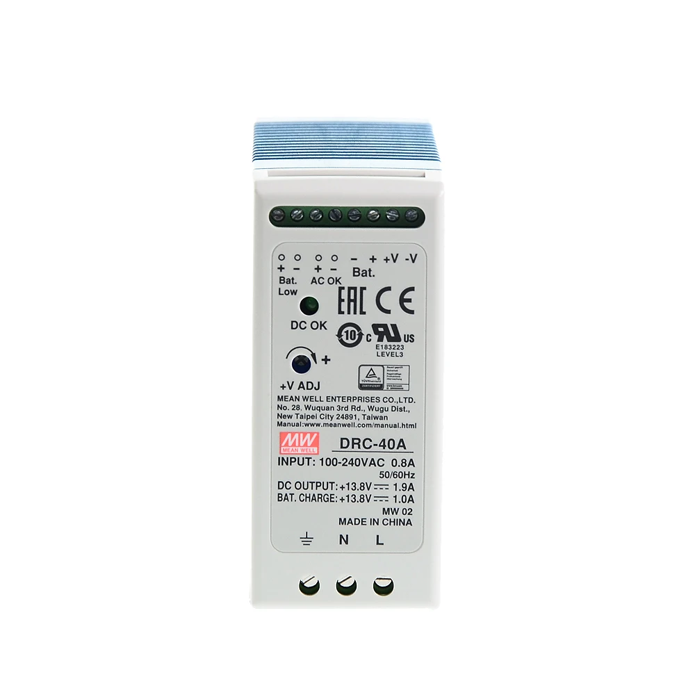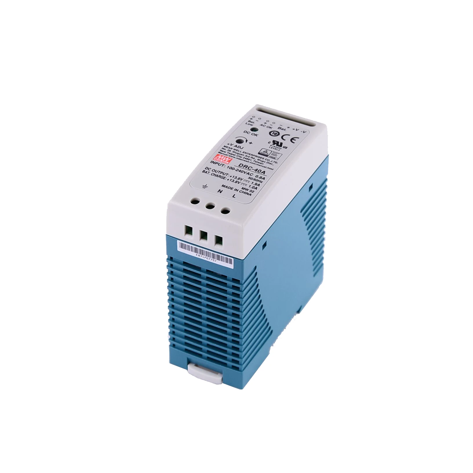 DRC-40-это 40 Вт AC/DC din-рейка типа безопасности питания серии. В дополнение к первичному выходу, есть выход зарядного устройства с меньшим номинальным током, что позволяет резервному источнику питания аппликатор системы доступа безопасности требуют. DRC-40 принимает универсальный вход между 90VAC и 264VAC, и поставляет 13,8vdc и 276VDC на выходе, соответственно. С эффективностью до 87%, он может работать с воздушным конвекционным охлаждением до-30 °C через 70 °C. В дополнение к ключевым функциям защиты, таким как защита от перегрузки, защита от перенапряжения, низкий отсек батареи и защита от обратной полярности батареи (предохранителем), сигнал тревоги для AC OK и батареи низкого сигнала обеспечивается, через TTL открытый colector выход для стандартной модели (Через релейный контакт выход в качестве дополнительной модели), чтобы облегчить проектирование системы.
