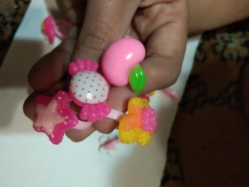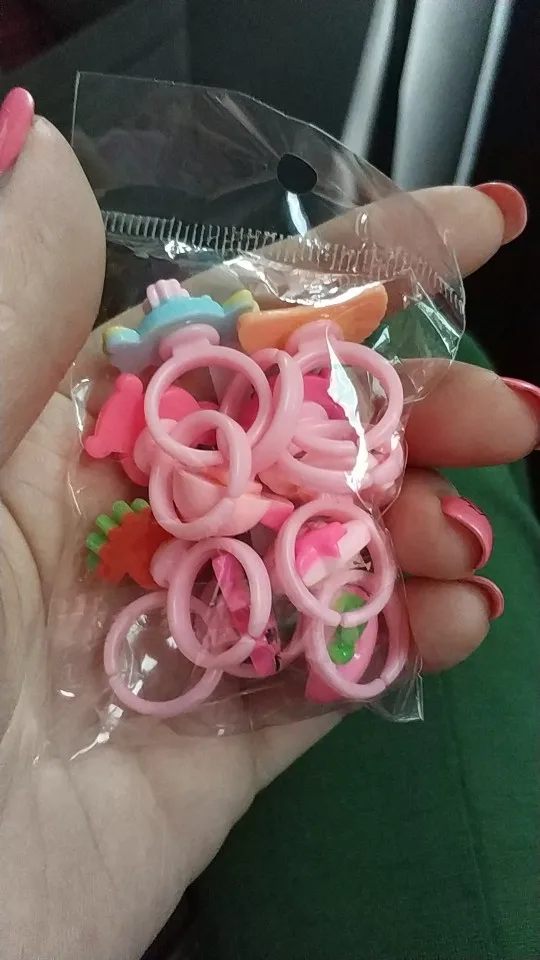 милые кольца, моей дочке понравились..окрас ровный, к качеству претензий нет, я давно такие пластиковые искала для своего ребёнка...из 10 штук, попались, 2 штуки одинаковые, считаю не критично...