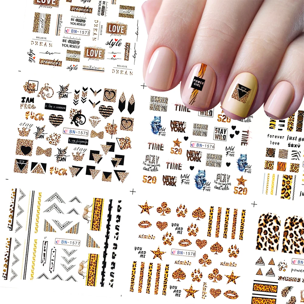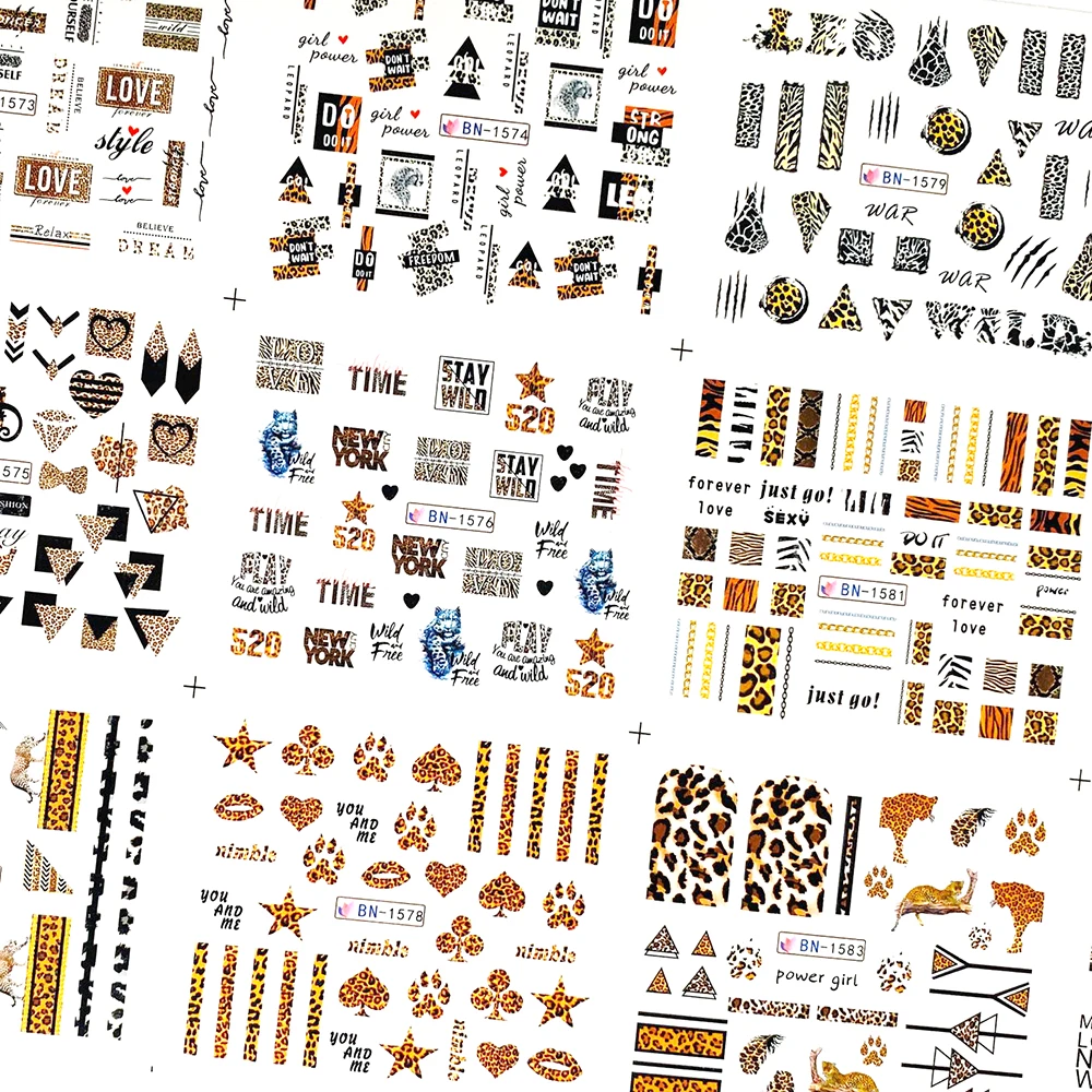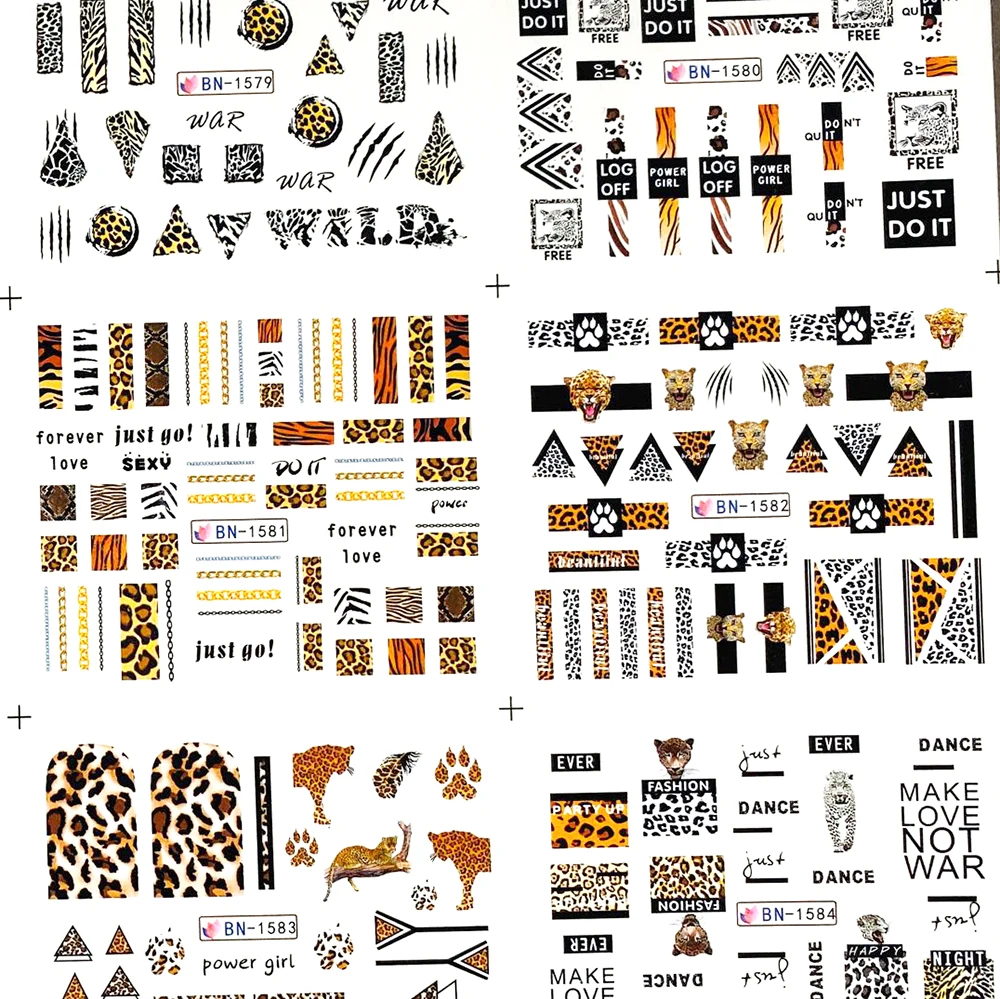 12 шт. наклейки для дизайна ногтей леопардовая серия водные переводные наклейки Набор слайдер Фольга для татуажа красоты DIY украшения для ногтей BN1573-1584
