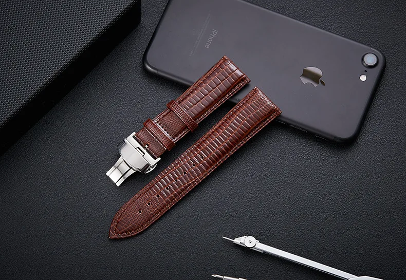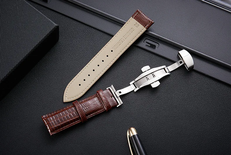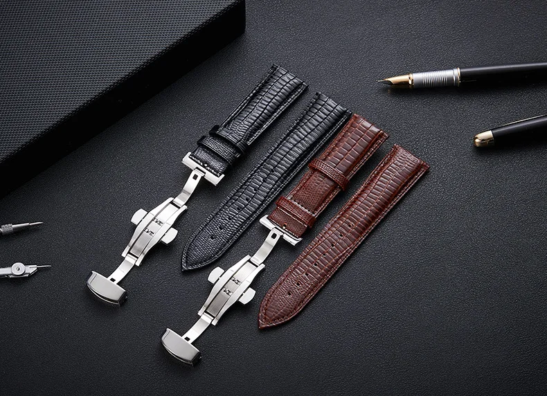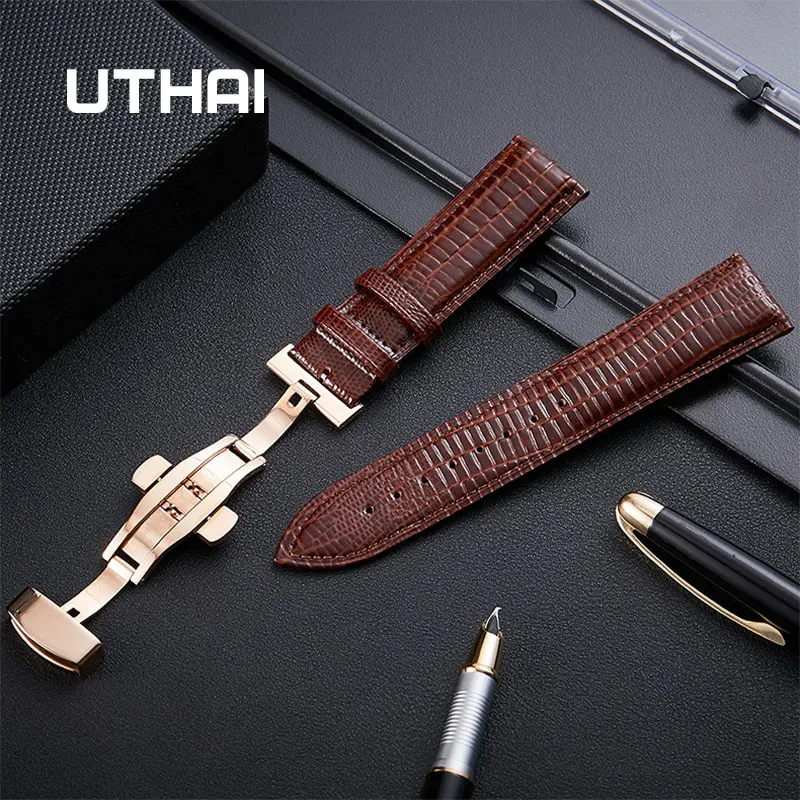 Ремешок UTHAI Z29 из натуральной кожи для наручных часов, стальной браслет с пряжкой-бабочкой, с инструментами, 14 мм 16 мм 18 мм 20 мм 22 мм