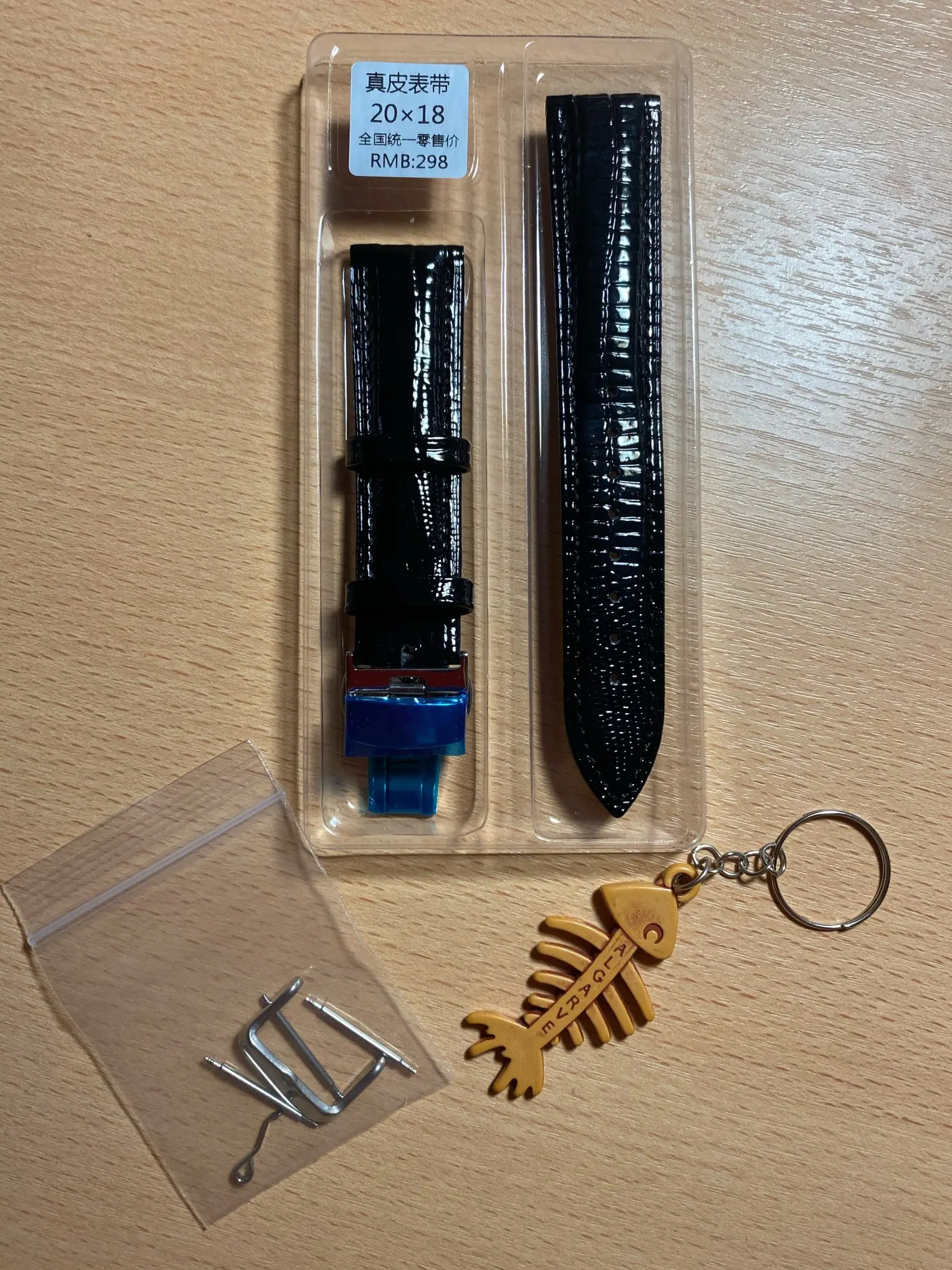 ремешок отличный, доставили за месяц в Петербург. в комплекте все что нужно для установки плюс классическая пряжка, если вдруг кому бабочка не подходит