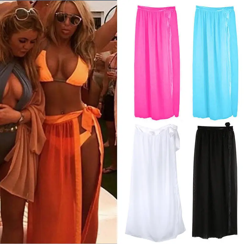 Сексуальная Женская пляжная шифоновая Макси-юбка, Пляжная длинная ю...
