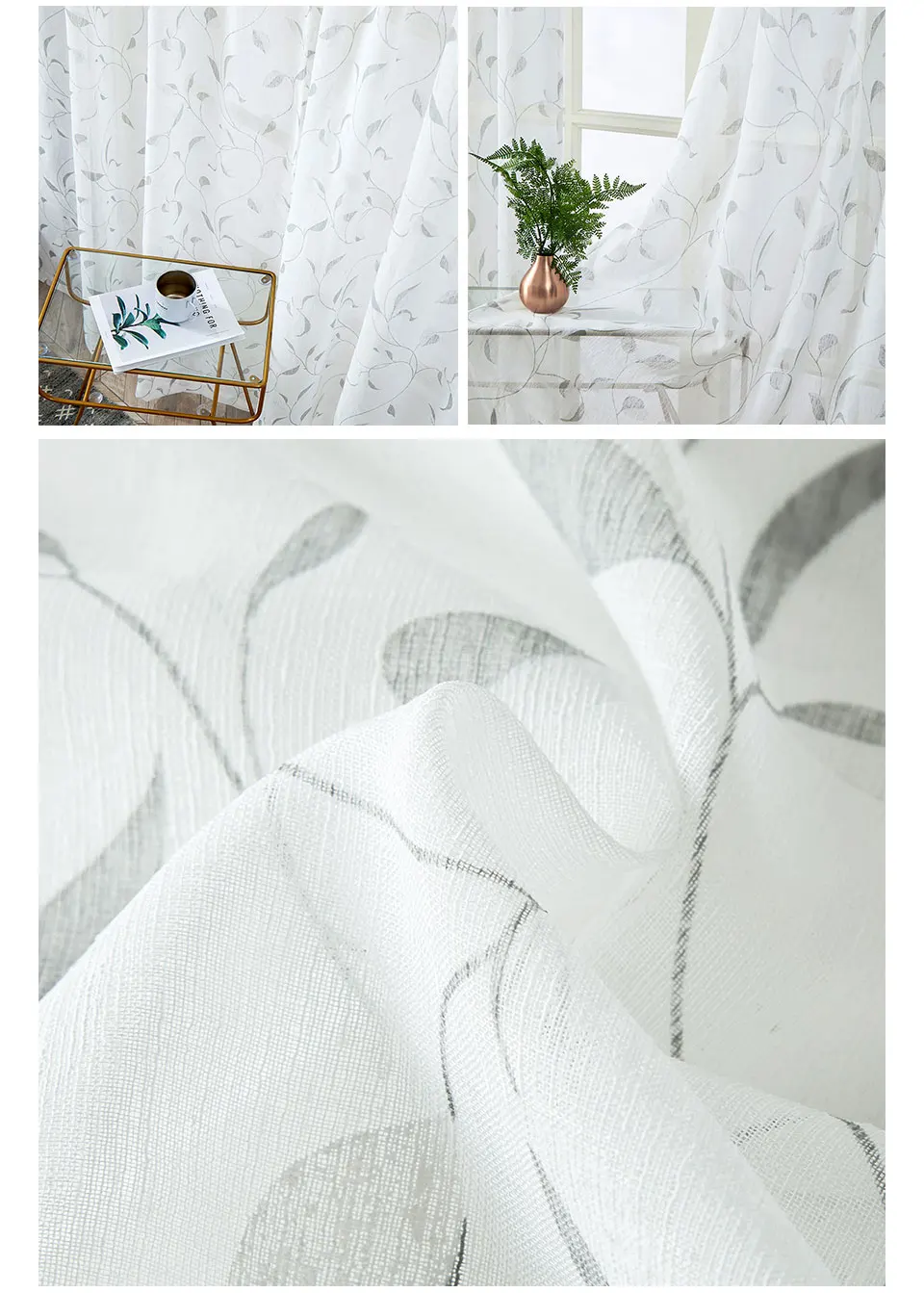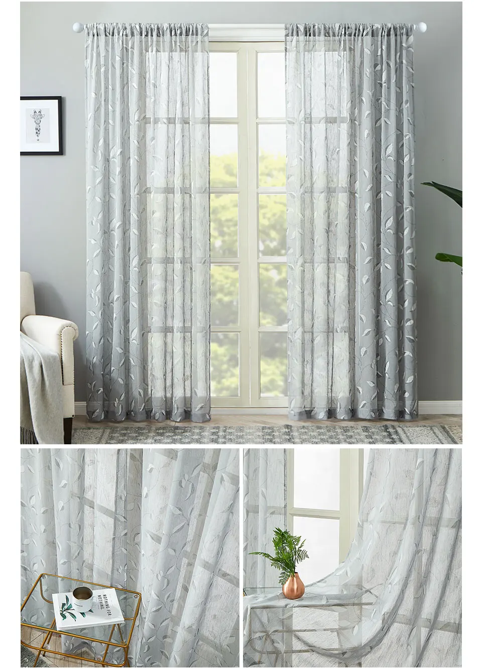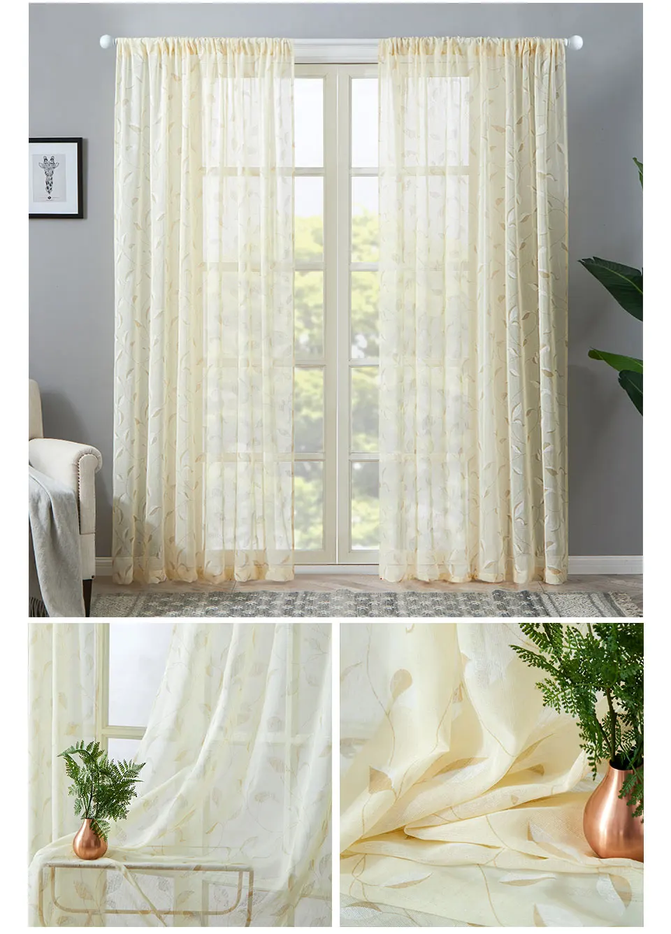 Занавеска из тюля для гостиной, спальни, кухни, с вышивкой листьев