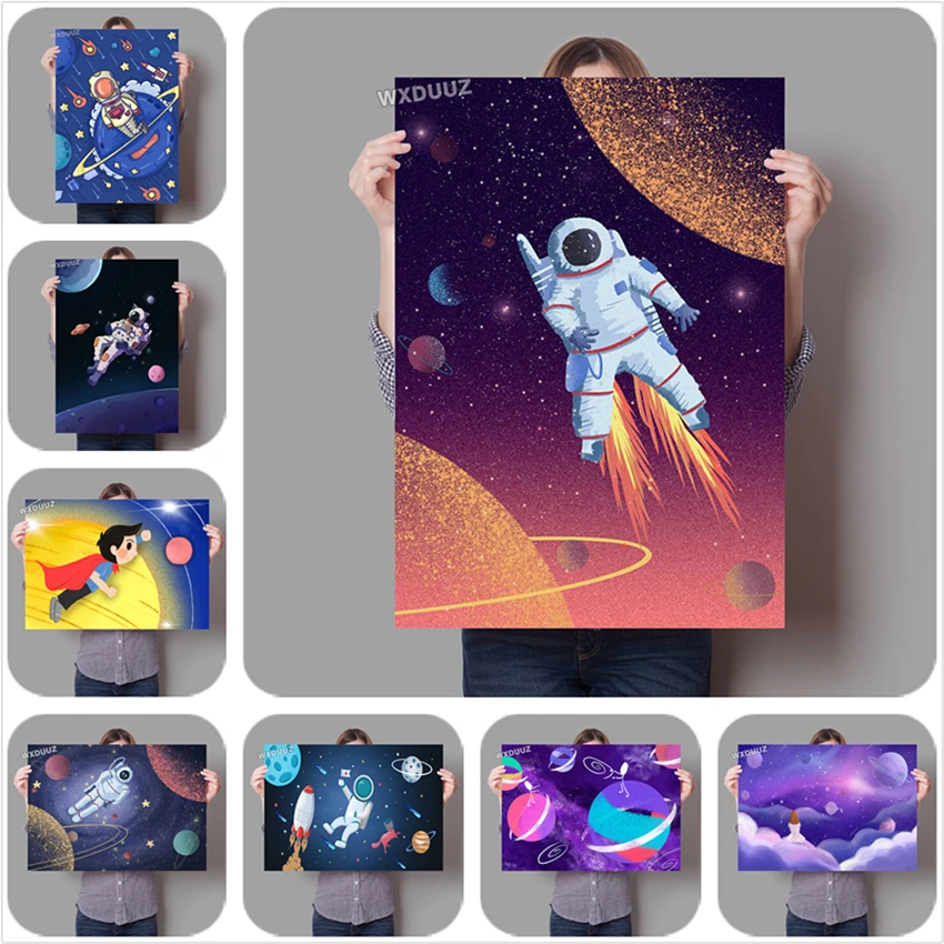 Постер M309 на холсте с изображением космонавта, солнечной системы