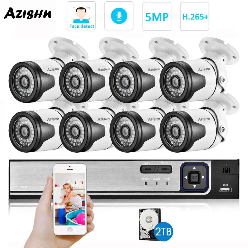 Камера Наружного видеонаблюдения с функцией обнаружения лица, H.265 + 8 каналов, 5 МП, HD, POE, NVR, аудиосвязь, 36 инфракрасных светодиодов, P2P IP