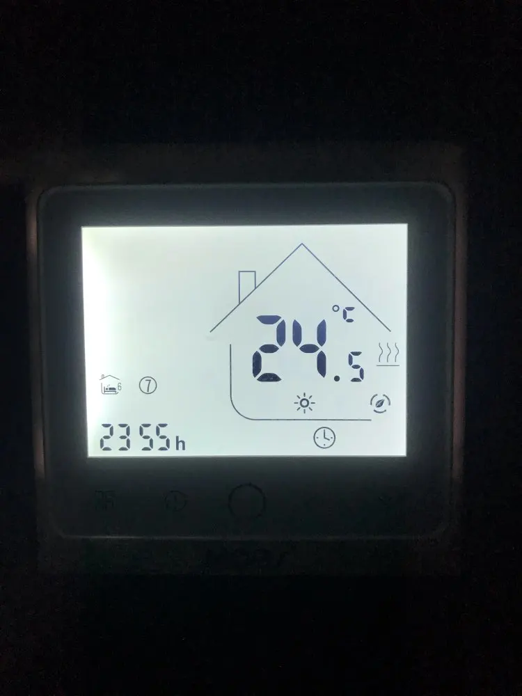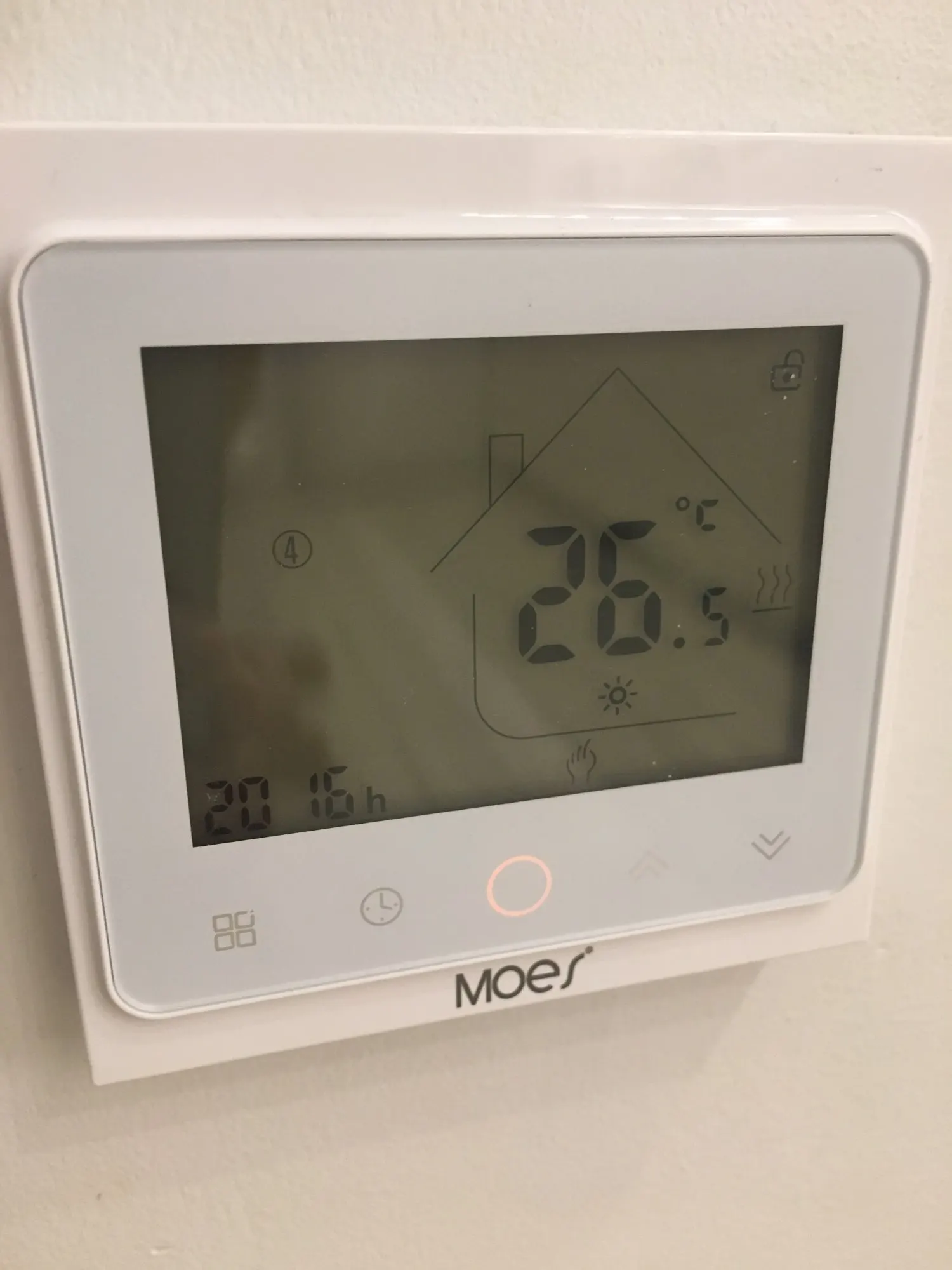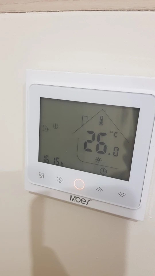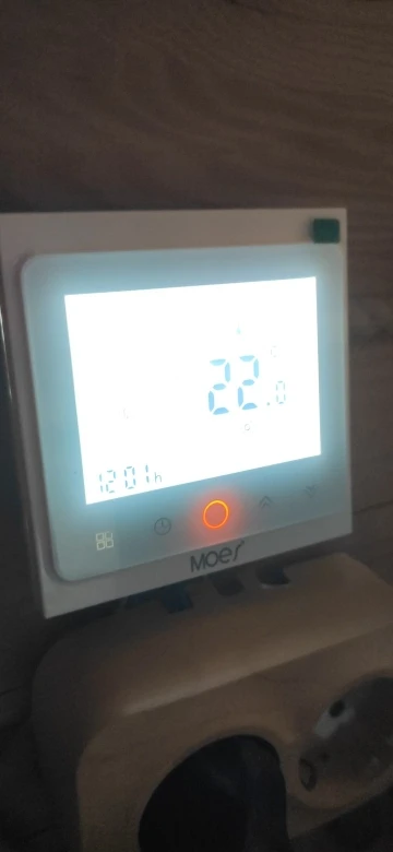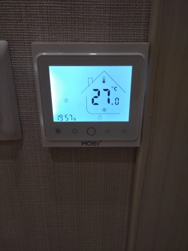 Всё работает, всё регулируется, пришёл с термостатом в комплекте. К Алисе подключился и подружился, только температура регулируется через Алису скачками через 5 градусов, (20-25-30...) хотя через саму панель по 0,5 градуса. При взгляде сбоку сильно тускнеет картинка, чтобы чётко читалось, надо перпендикулярно смотреть.