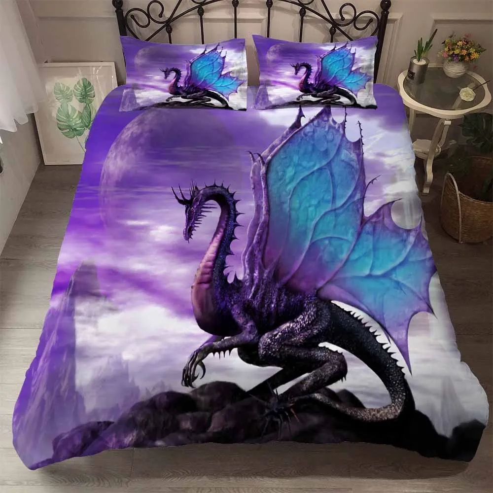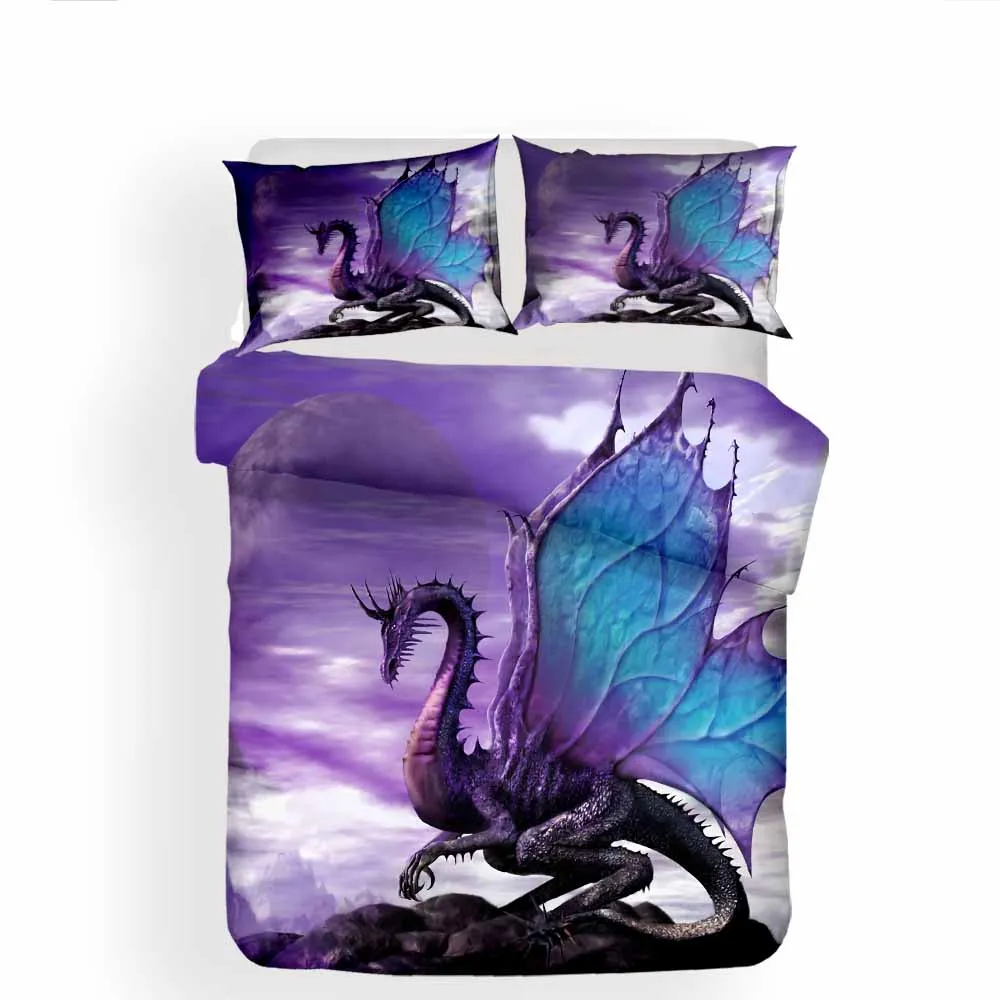 Fly Dragon постельные принадлежности наборы 3d печатных животных пододеяльник наволочка один двойной полный королева дети пододеяльник набор фиолетовый черный