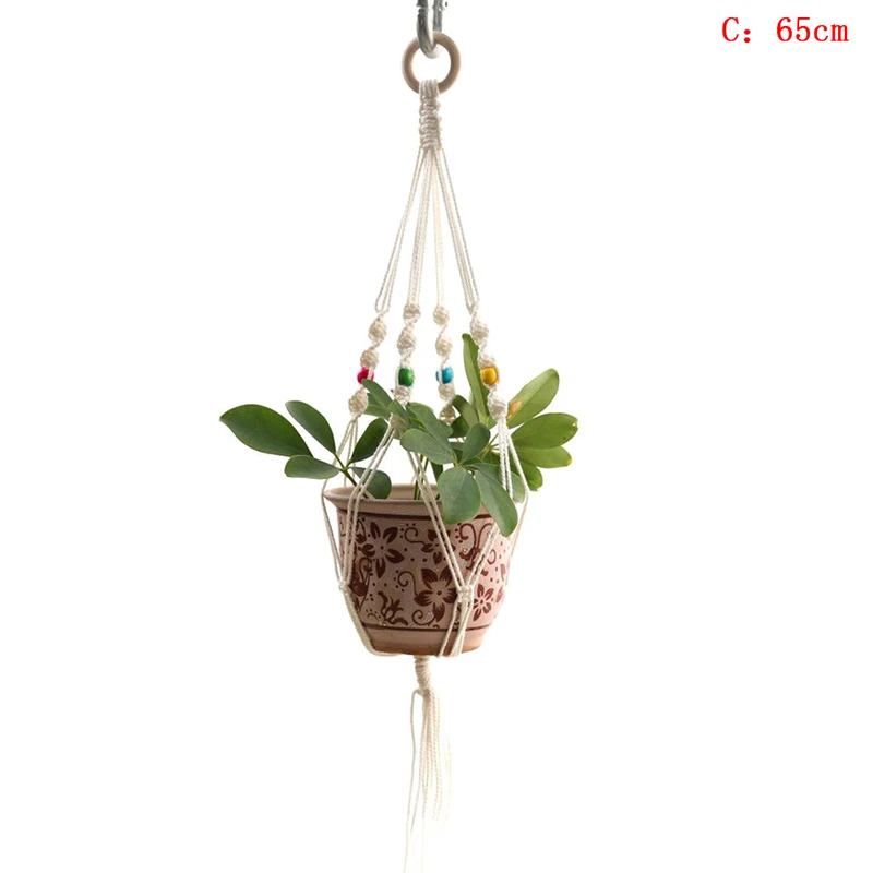 -Этот Подвесной Канат используется для хранения цветочного горшка. -Веревка прочная, и она может держать тяжелый цветочный горшок. -Подвесная веревка может использоваться внутри или снаружи-просто возьмите ее в холодные зимние месяцы. -Чтобы повесить ваше растение, просто вставьте горшок в вешалку, выровняйте горшок и сползайте бусины до края горшка. -Вы можете повесить его на крючок потолка или на стену, для использования на крючке балкона или сада.