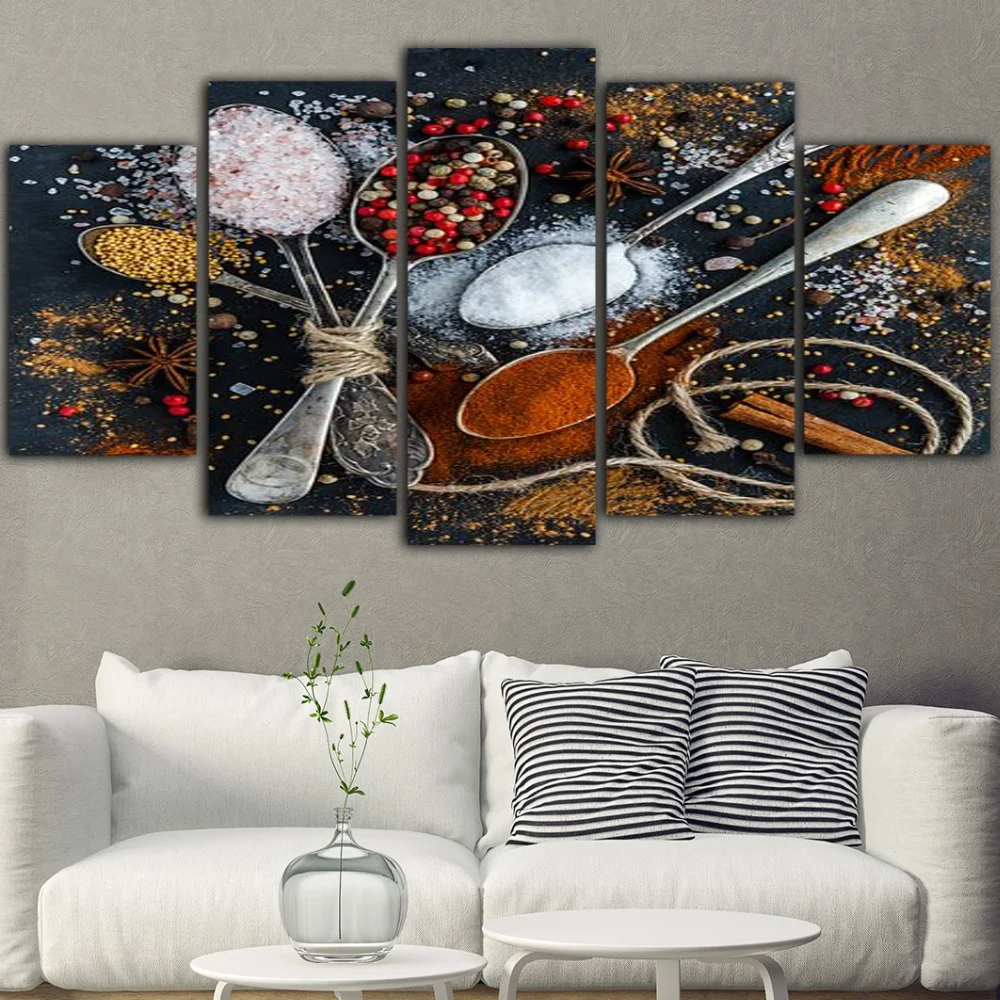 Настенная живопись на холсте, рамка, декор для кухни, ресторана, 5 ...