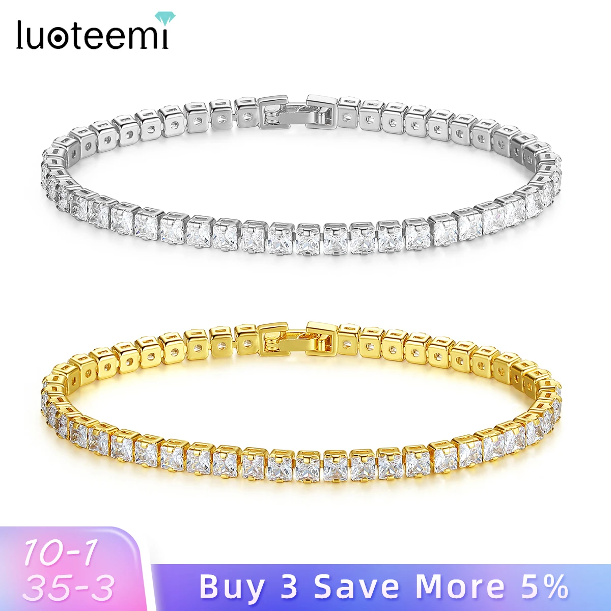 LUOTEEMI Новый мозаичный кубический цирконий Теннисный браслет и браслеты для женщин модные ювелирные изделия Pulseras Mujer подарок на Рождество