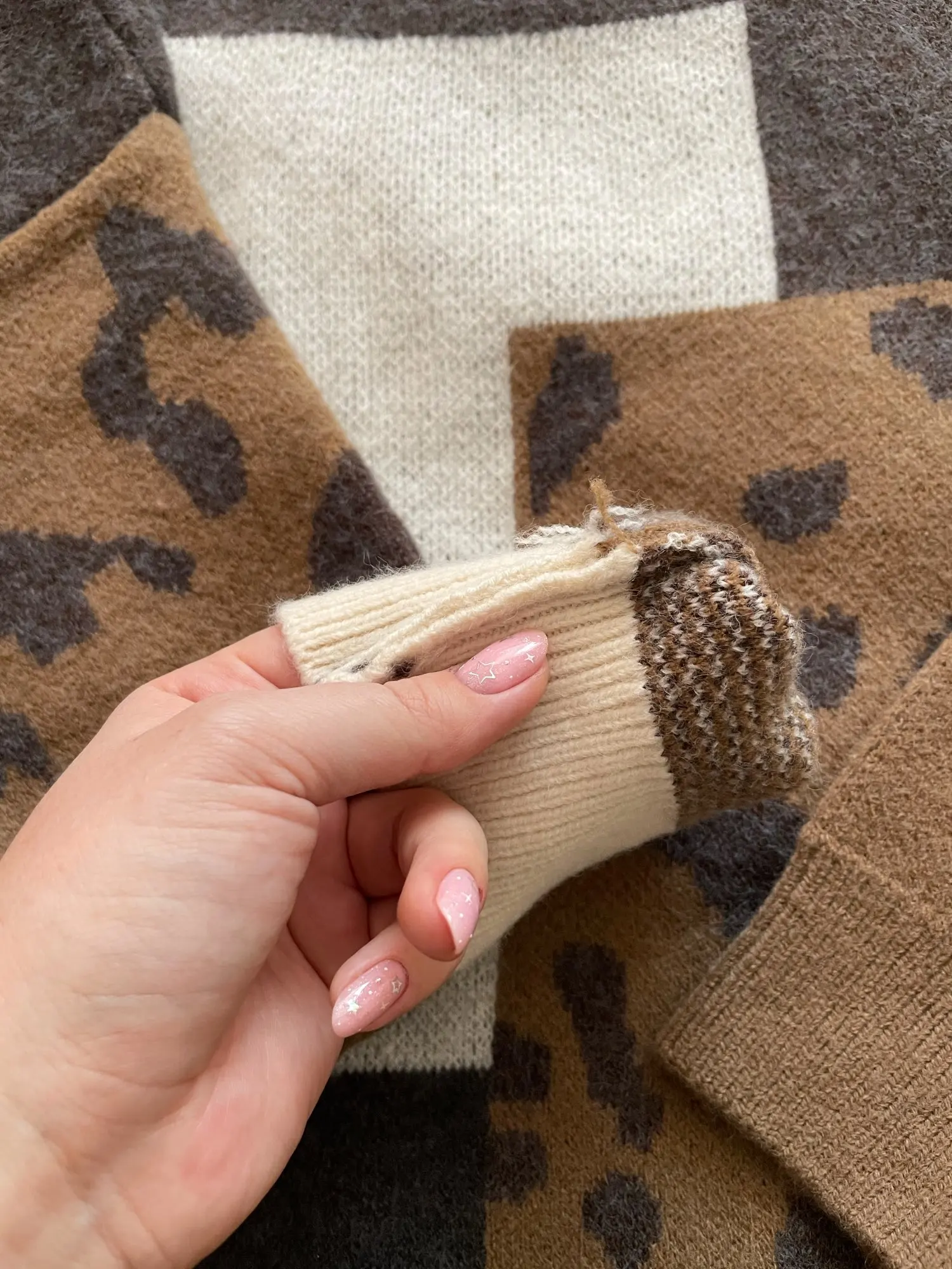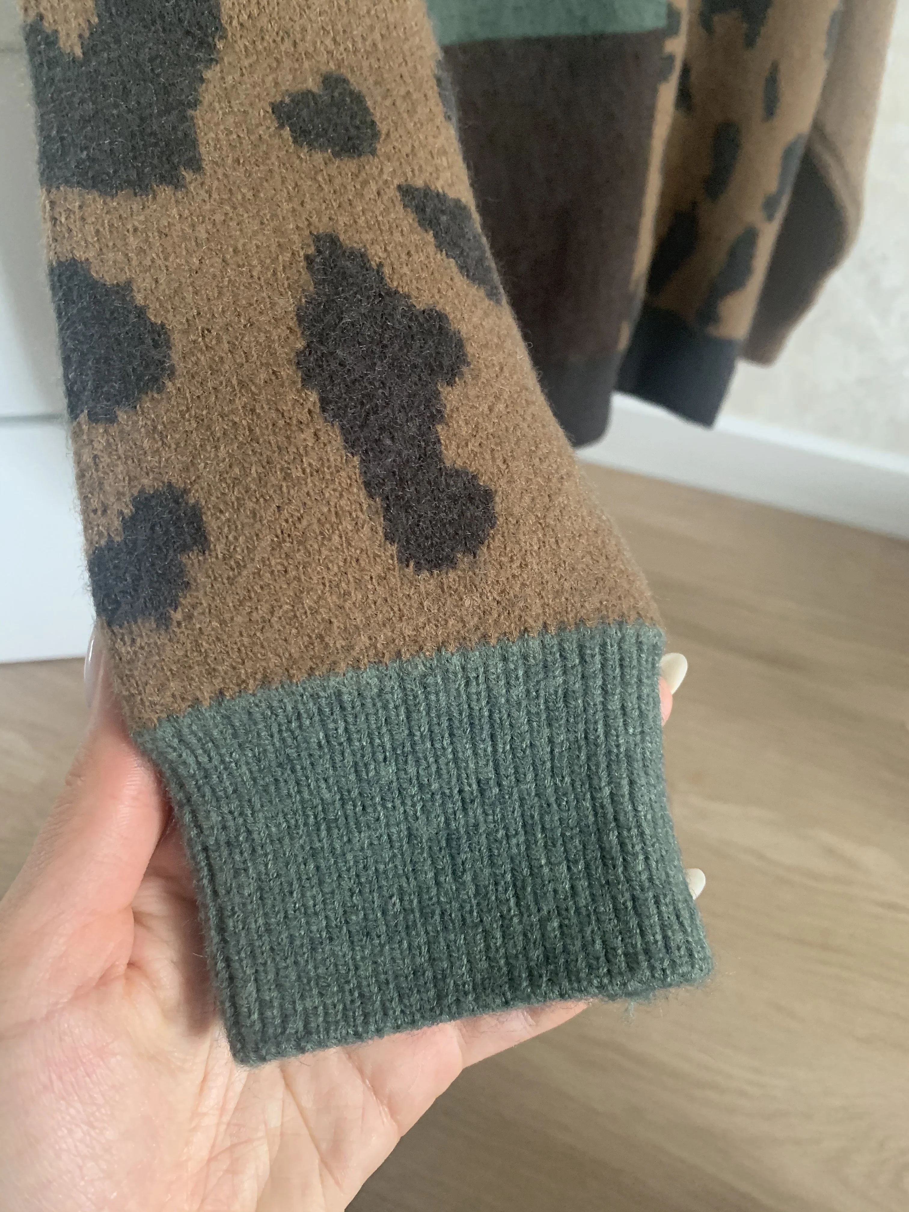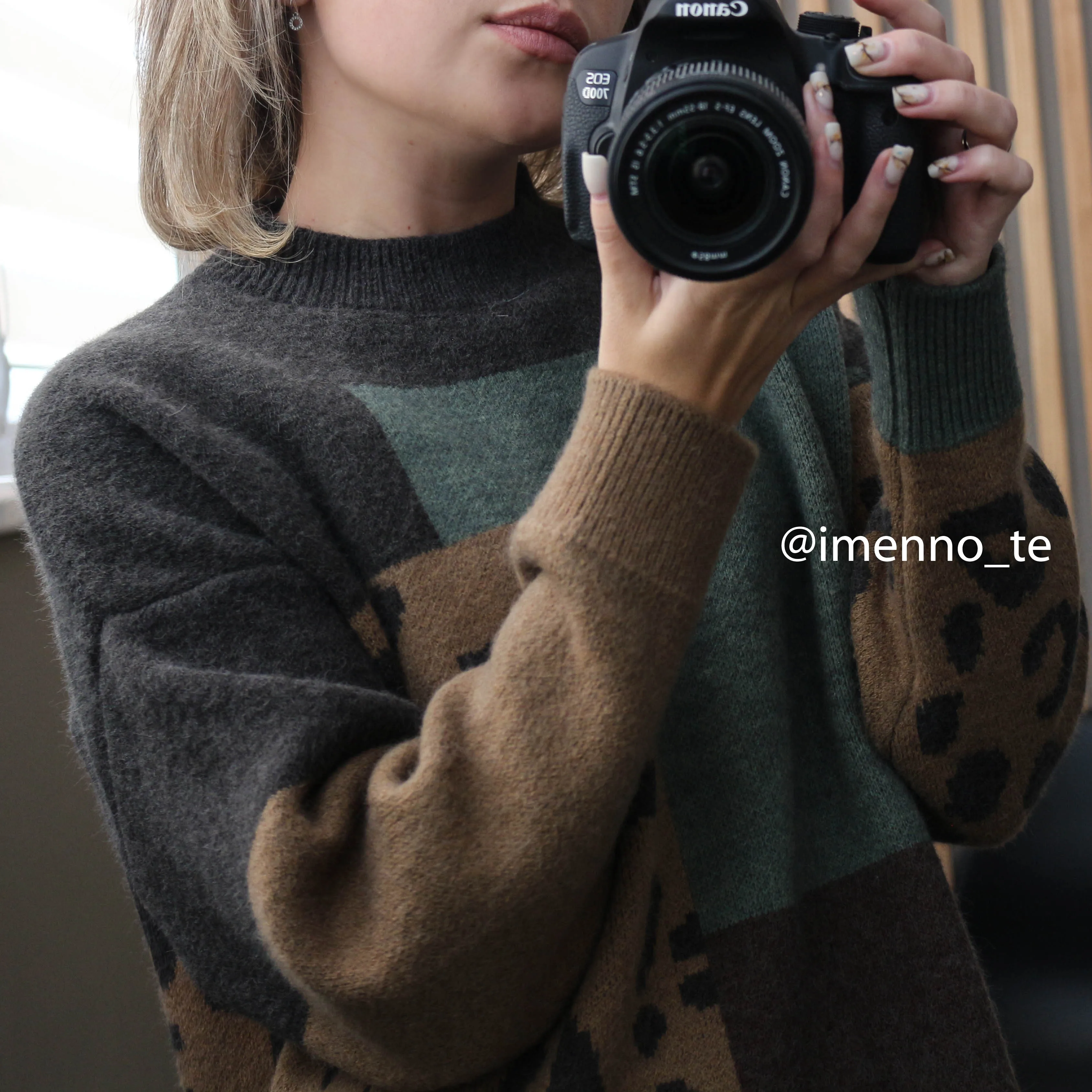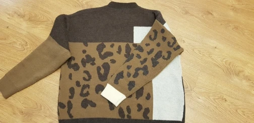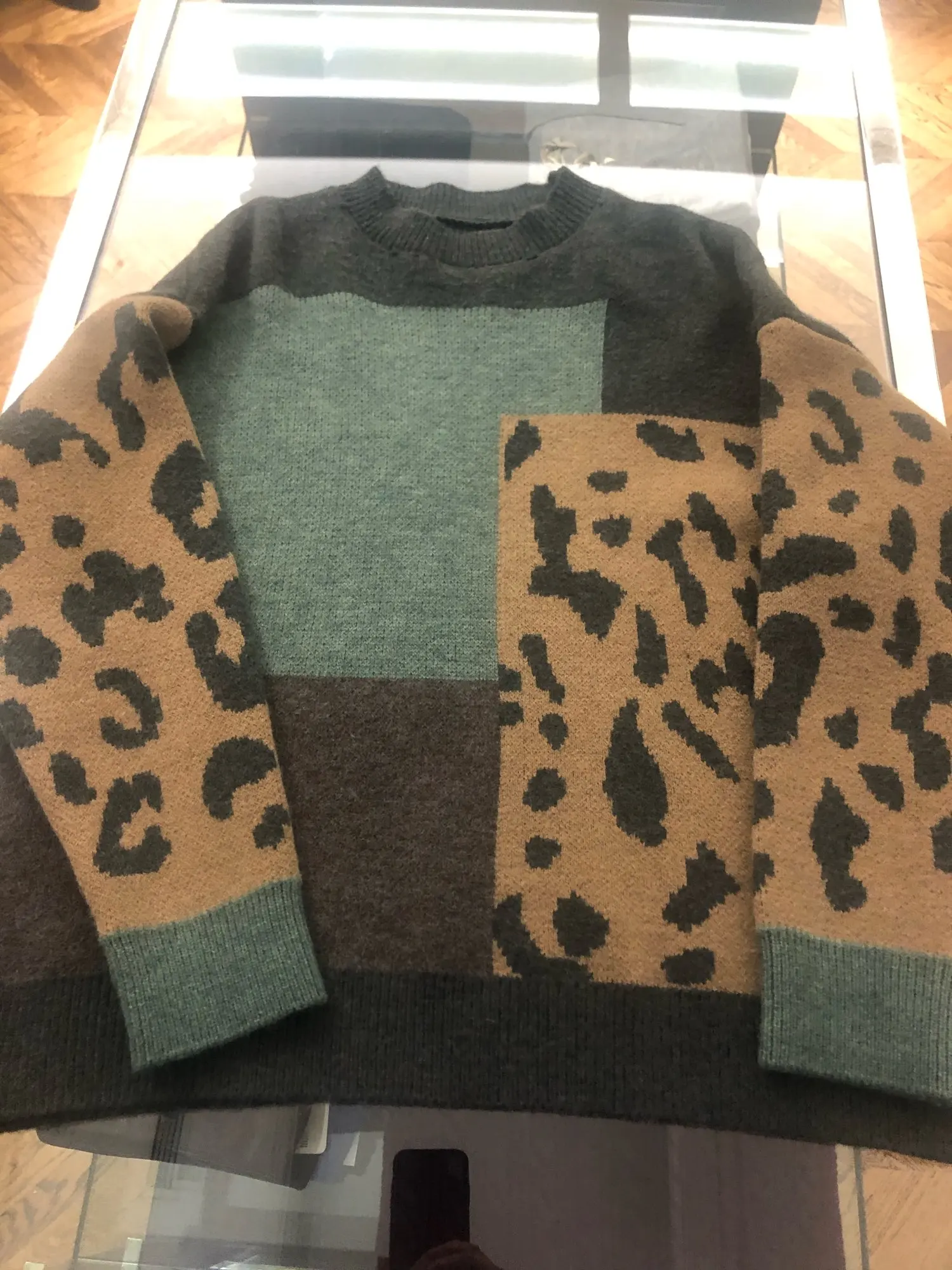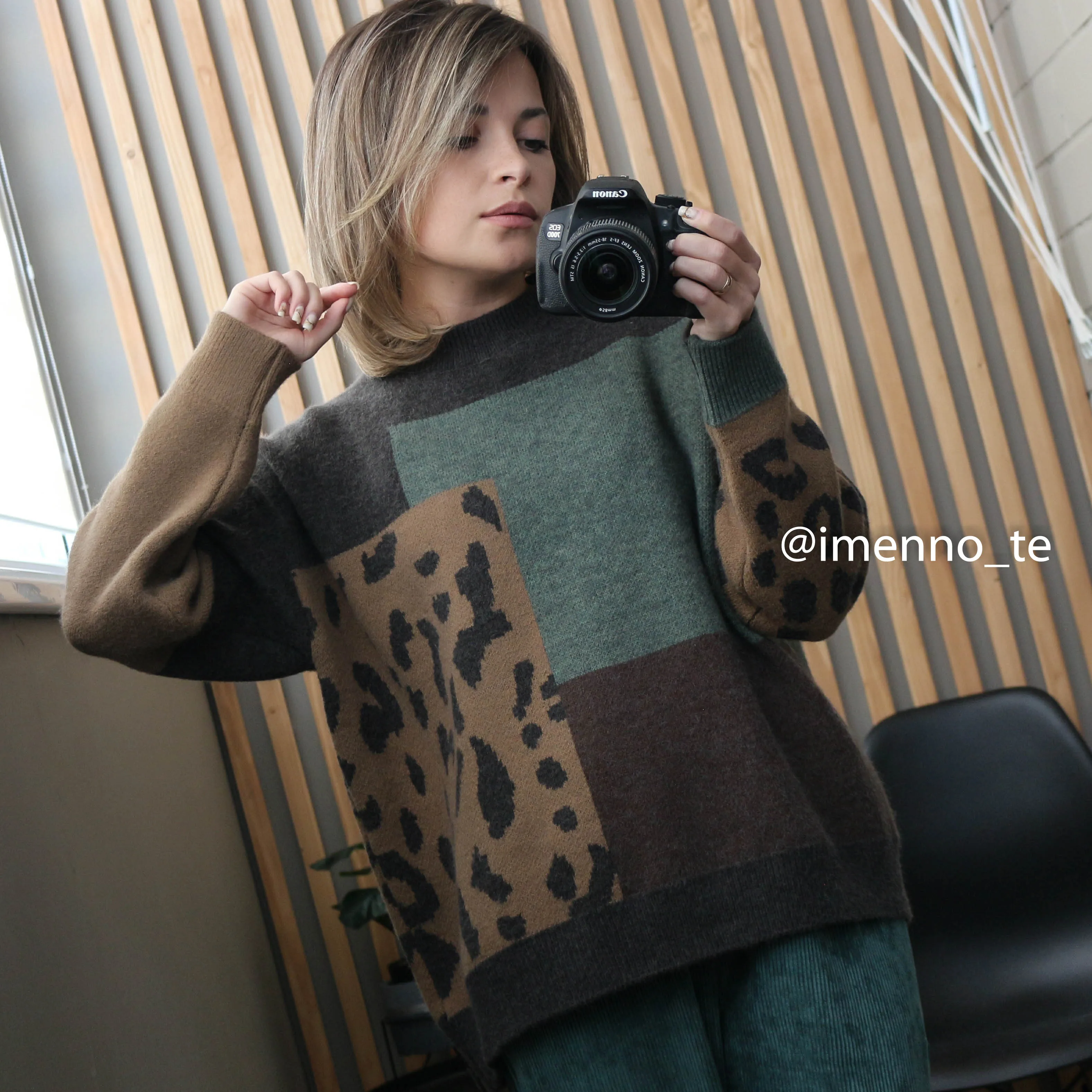 Свитер женский трикотажный Леопардовый, с круглым вырезом и длинным рукавом, осень 2020