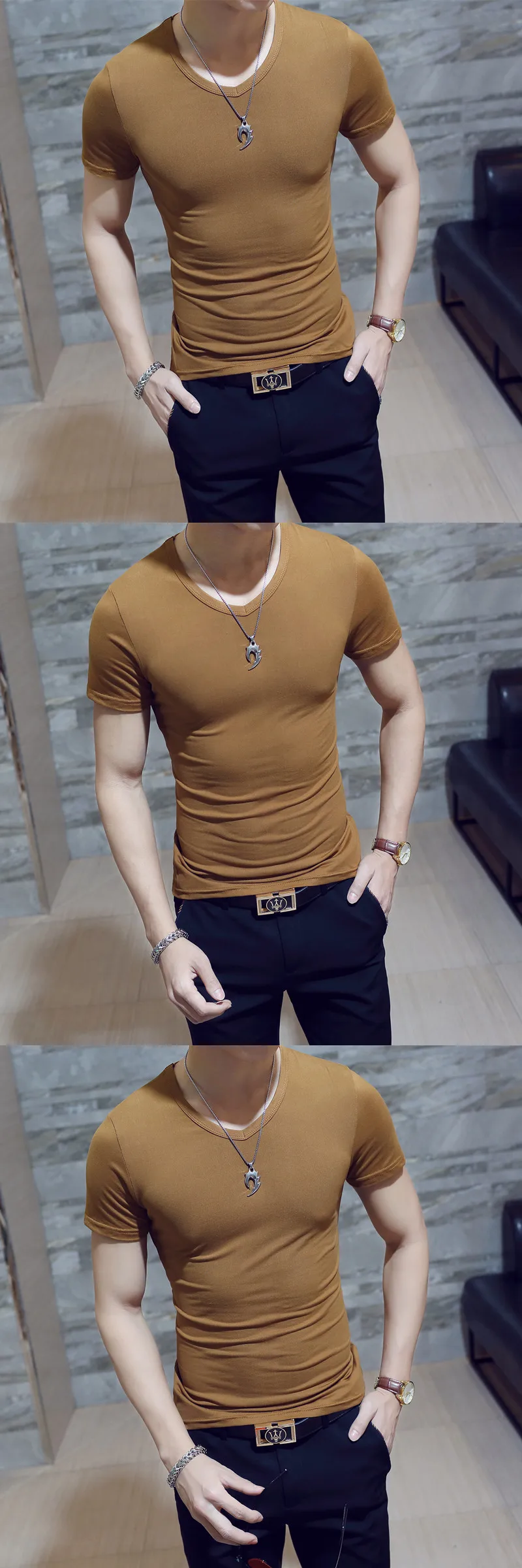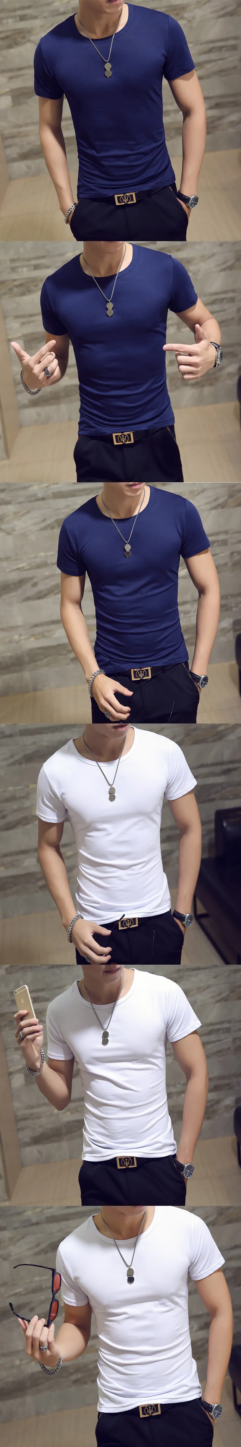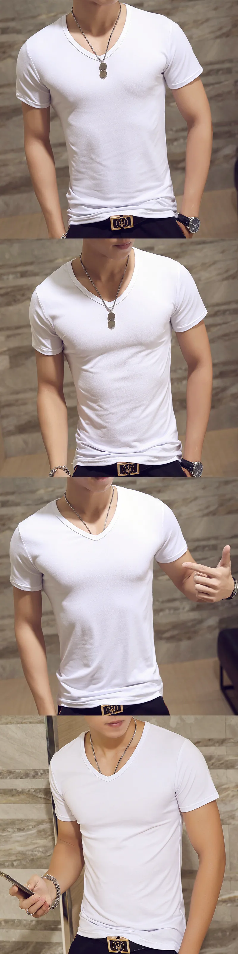 Футболка мужская с коротким рукавом, модная тенниска с V-образным вырезом, Однотонная рубашка для фитнеса, лето