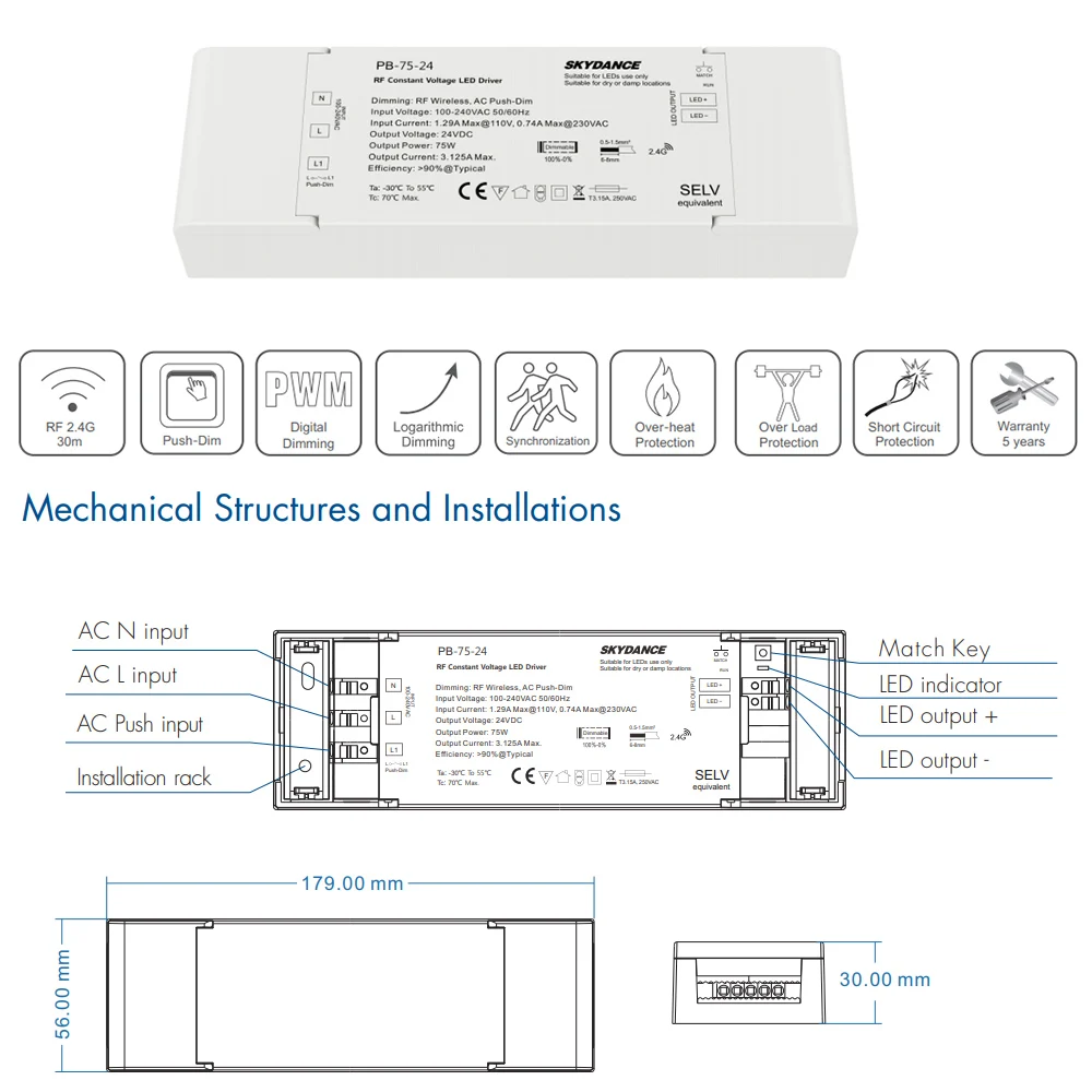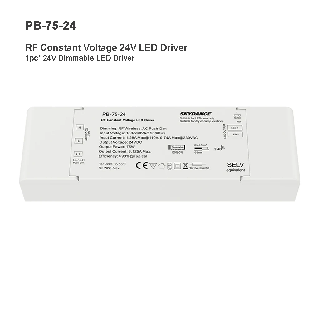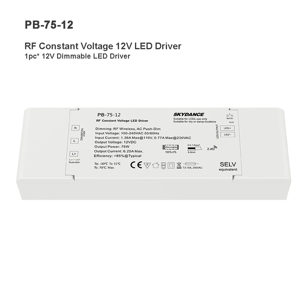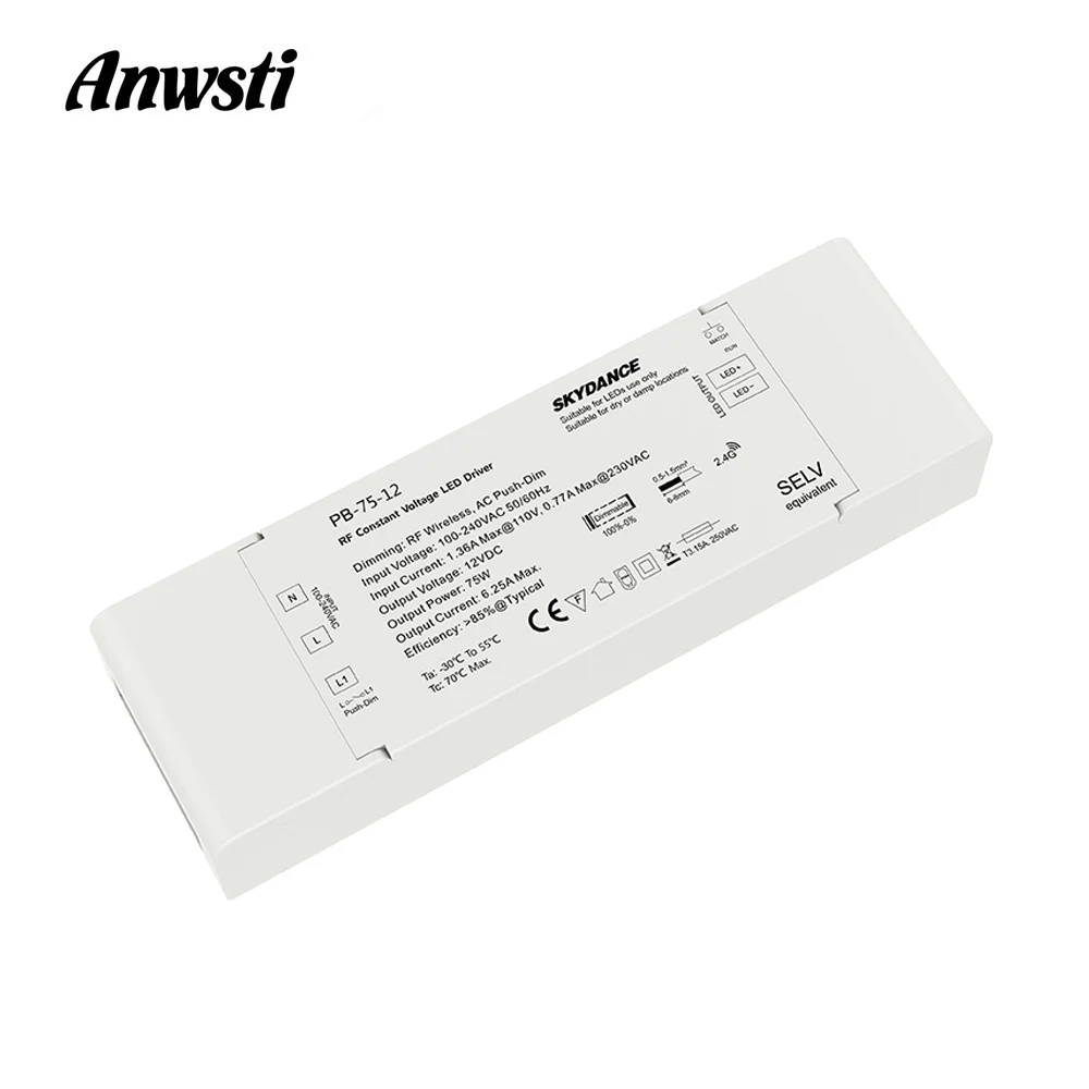 Светодиодный драйвер с регулируемой яркостью, 12 В, 24 В, 75 Вт, RF, 2,4G, беспроводной пульт дистанционного управления, 110 В, 220 В в перем. Тока, 12 В, 24 В, светодиодный драйвер с постоянным напряжением и затемнением