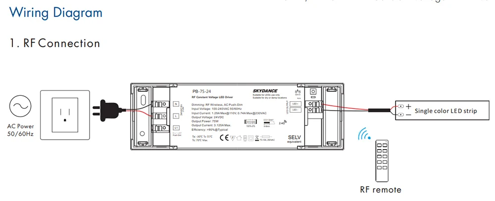 ● Подходит для одного цветного пульта дистанционного управления Skydance 2,4G, один светодиодный радиочастотный драйвер принимает до 10 пультов дистанционного управления