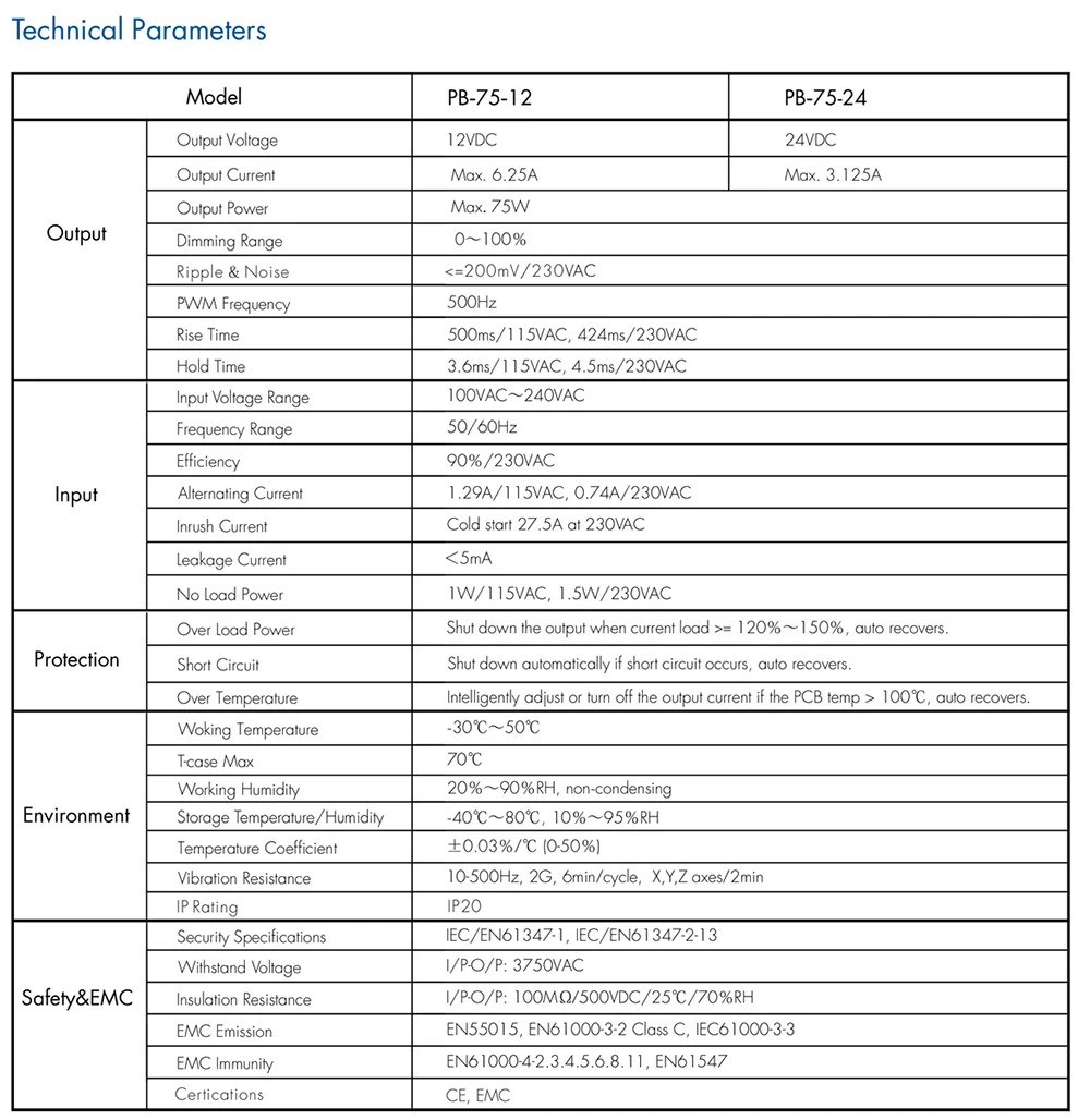 ● 1 канал постоянного напряжения, Макс. Общая выходная мощность 75 Вт