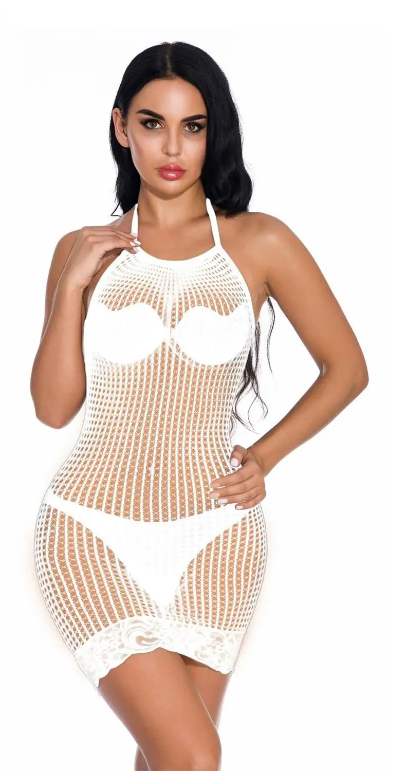 Мини-платье с открытой спиной, сексуальное платье, нижнее белье, Тедди, сетка, тонкий, с открытой спиной, с лямкой на шее, ягодицы, новое модное Стильное короткое платье