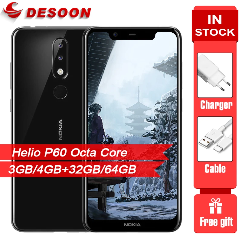 Nokia X5 5,86 дюймовый смартфон Helio P60 Octa Core Dual Sim карты с функцией отпечатка пальца ID 3060 мАч батарея LTE 4G Android мобильный телефон