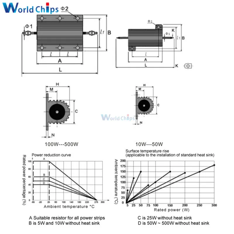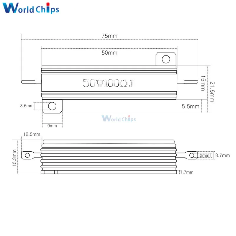 Резистор с проволочной обмоткой, 50 Вт, 100 Вт, 0,5r, 1R, 2R, 4R, 6R, 8R, 10R, 20R, с алюминиевым силовым металлическим корпусом, 0,01 100 кОм, 0,5 1 2 4 6 8 10 20 100 Ом